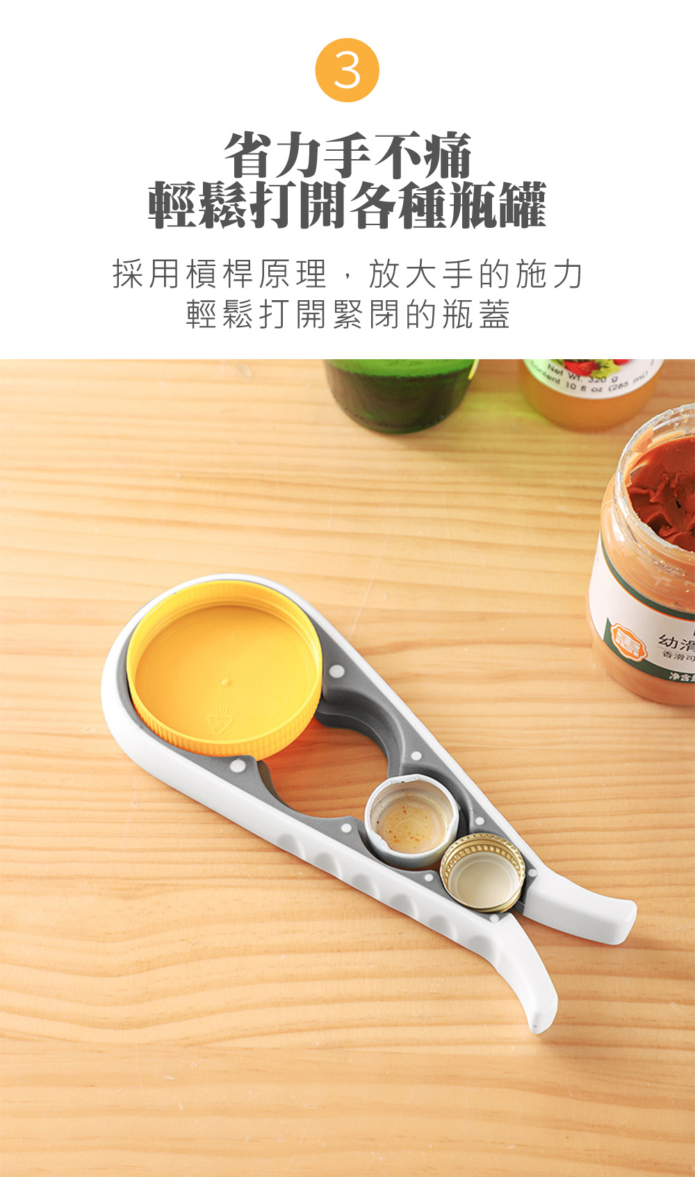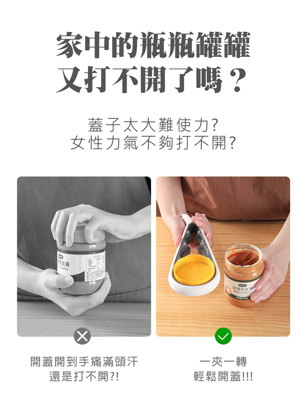 只要簡單夾住、輕輕一轉,再頑固的瓶蓋也能秒開!