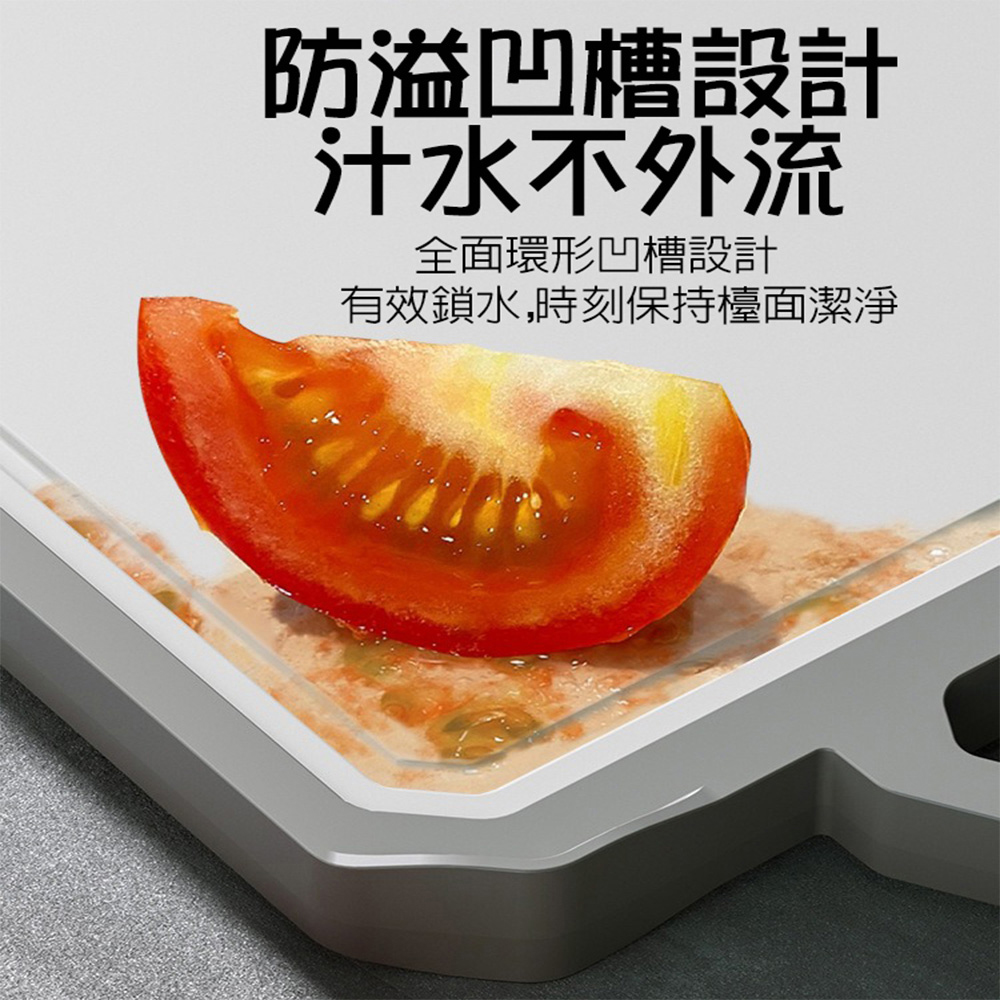 塑膠面有防漏設計,可以防止水份溢出,可當切菜板或切水果板,好切好放