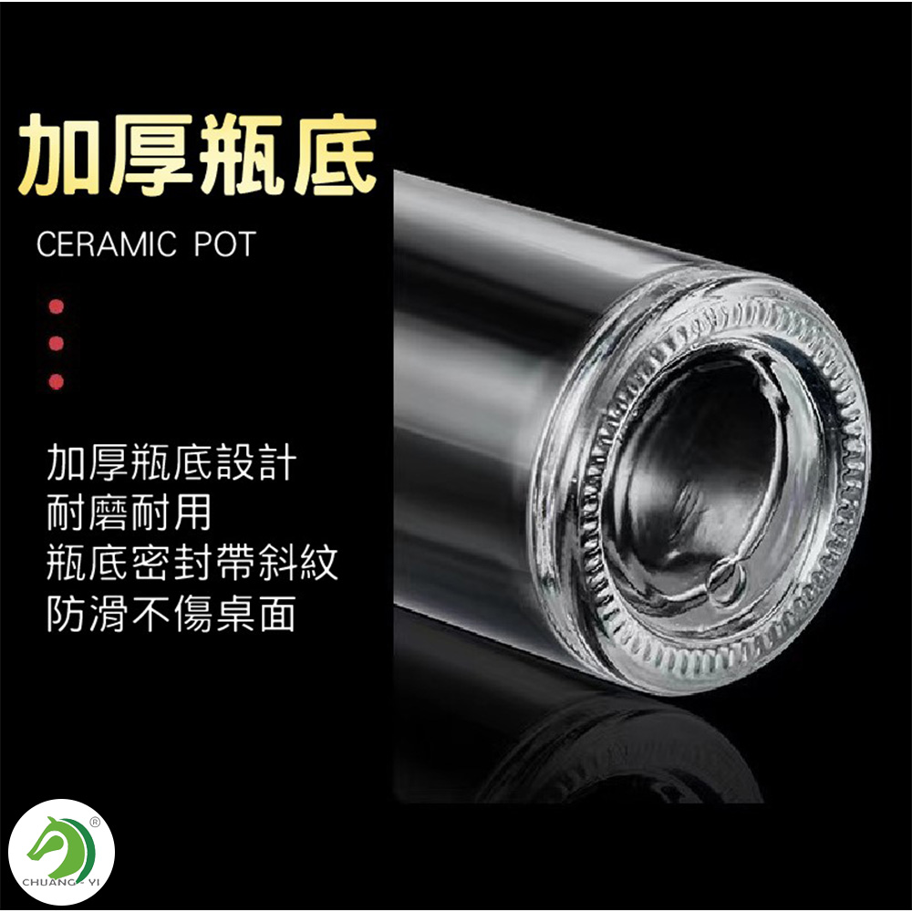 瓶身為玻璃材質,請勿重摔以免破碎,請放置兒童無法觸及處