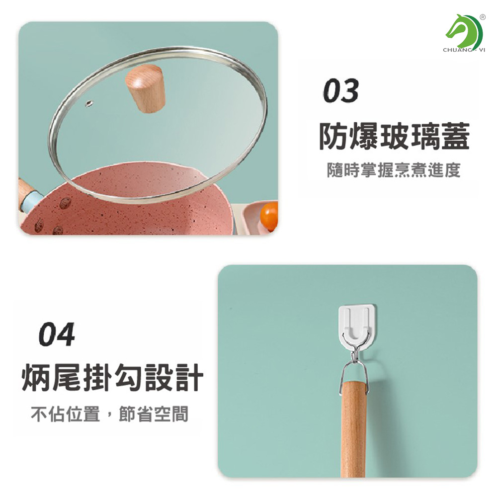 【商品名稱】麥飯石不沾雪平鍋(附鍋蓋)