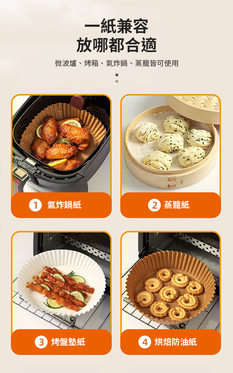 【CITY STAR】Air fryer baking paper, household baking tray oil-absorbing paper (100 sheets/pack)