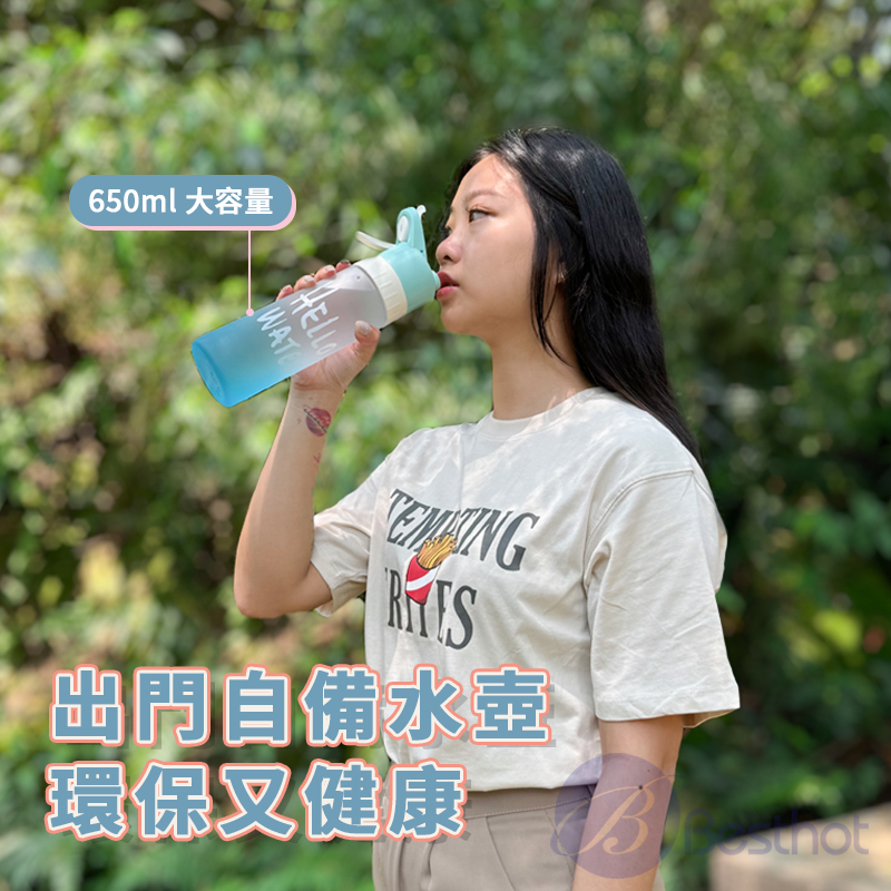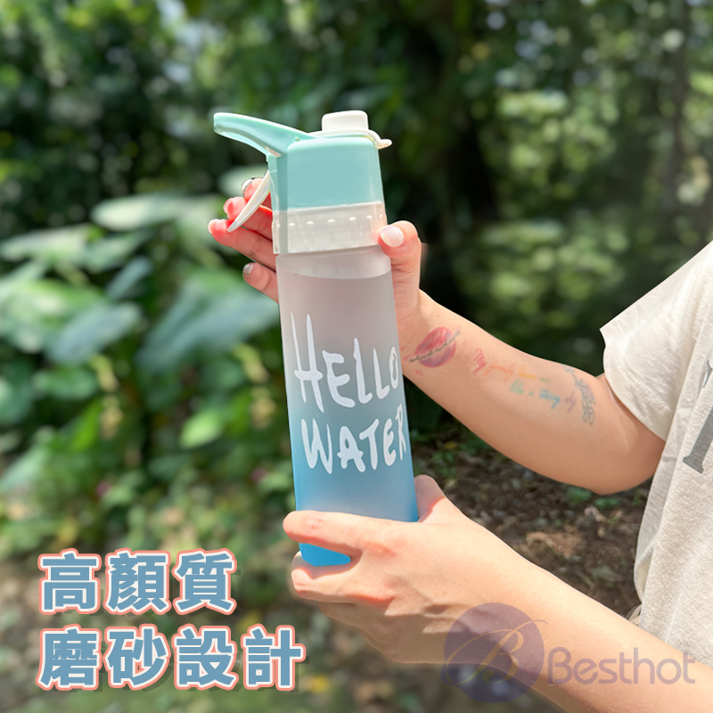 【Besthot】650mL霧面降溫噴霧戶外運動隨身水壺-藍色