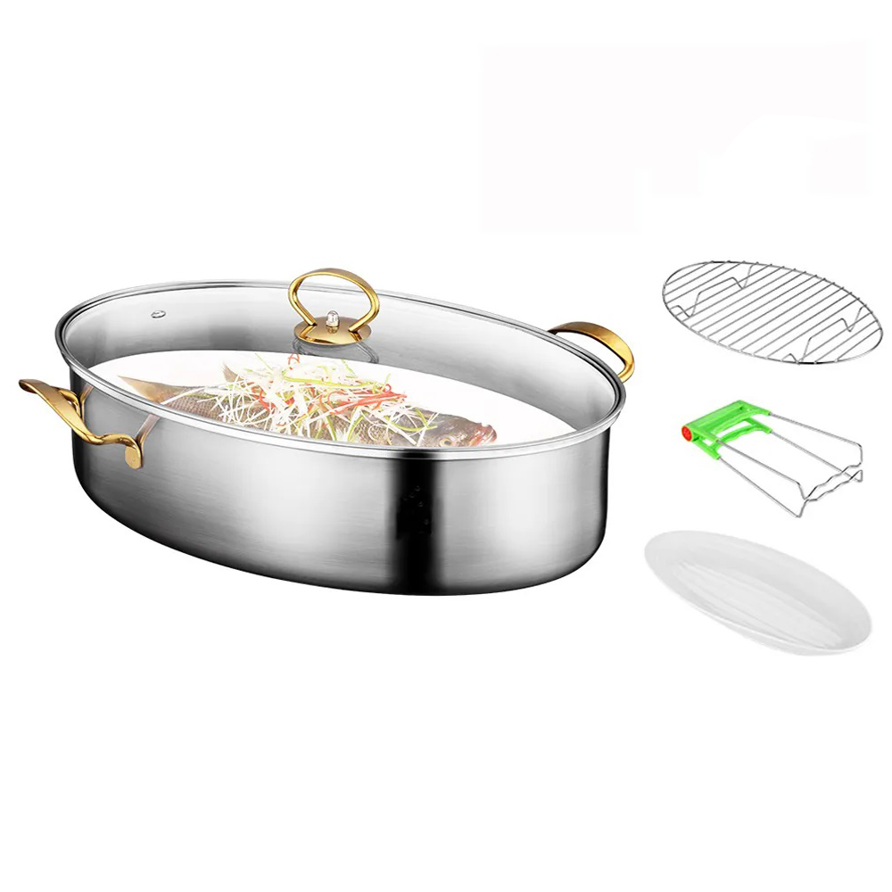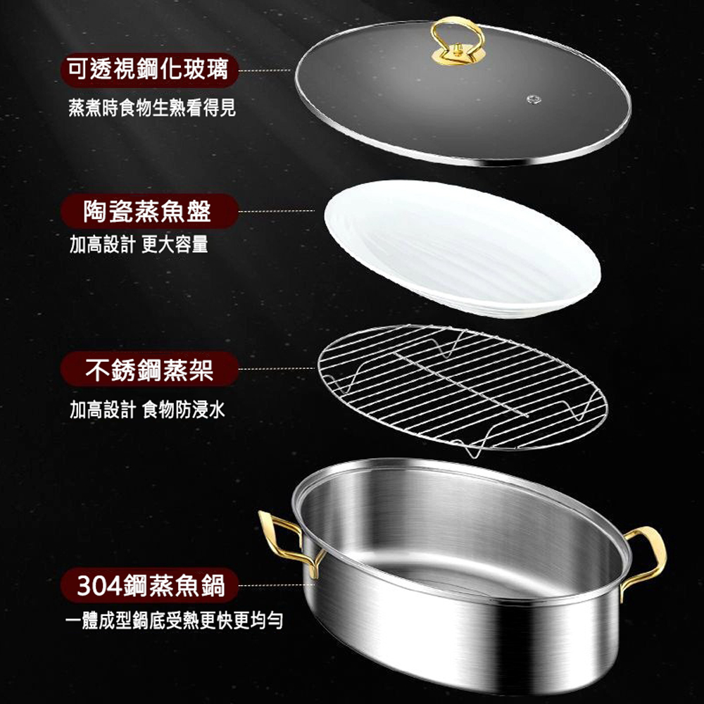 橢圓形蒸鍋可蒸整條魚,附贈蒸架、蒸魚盤、提盤器