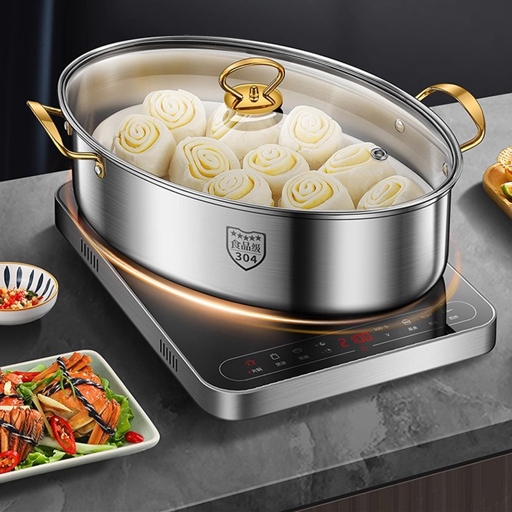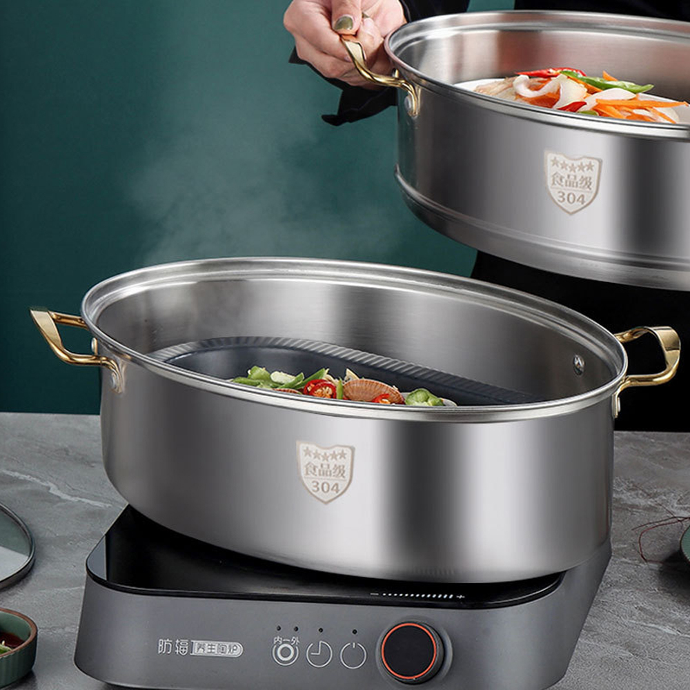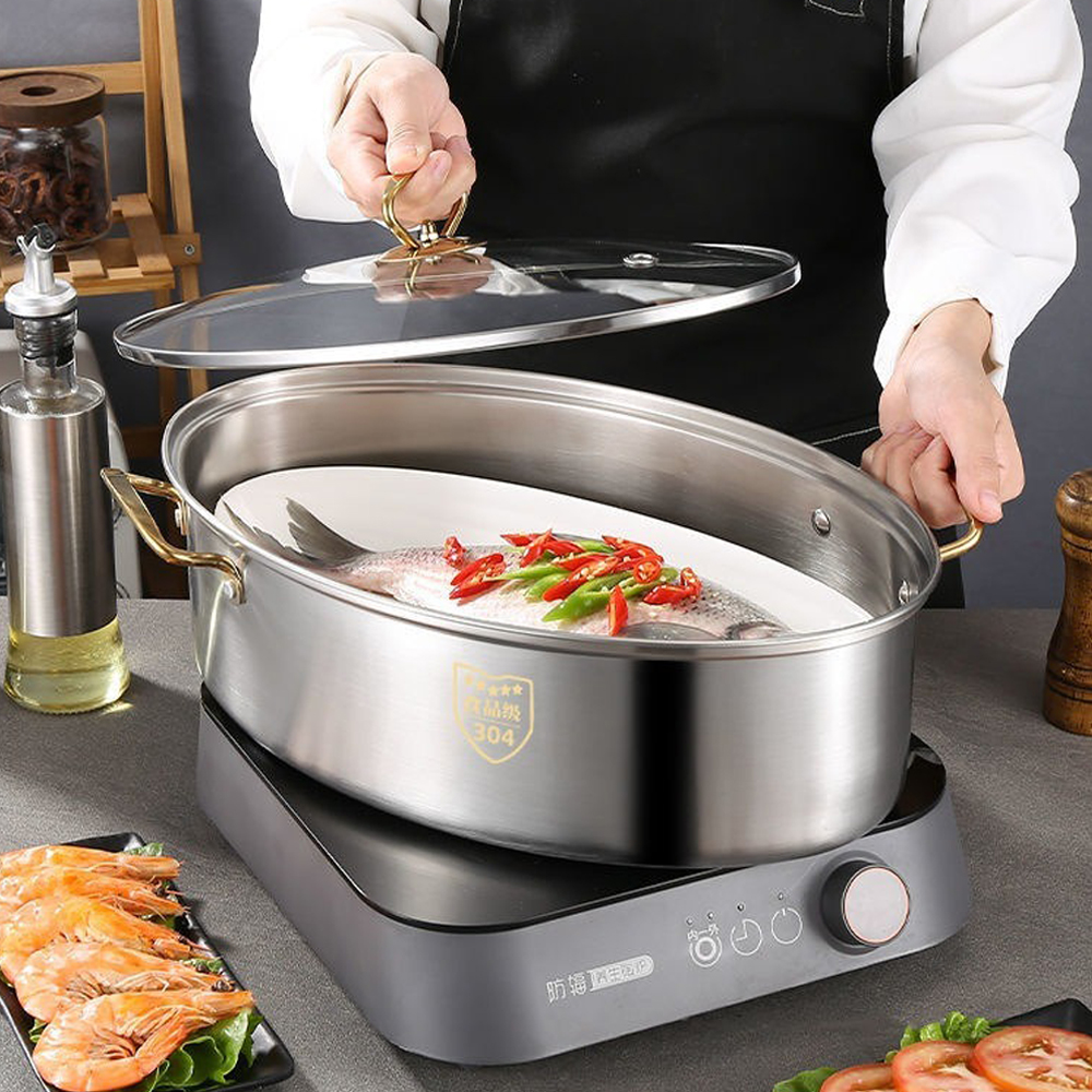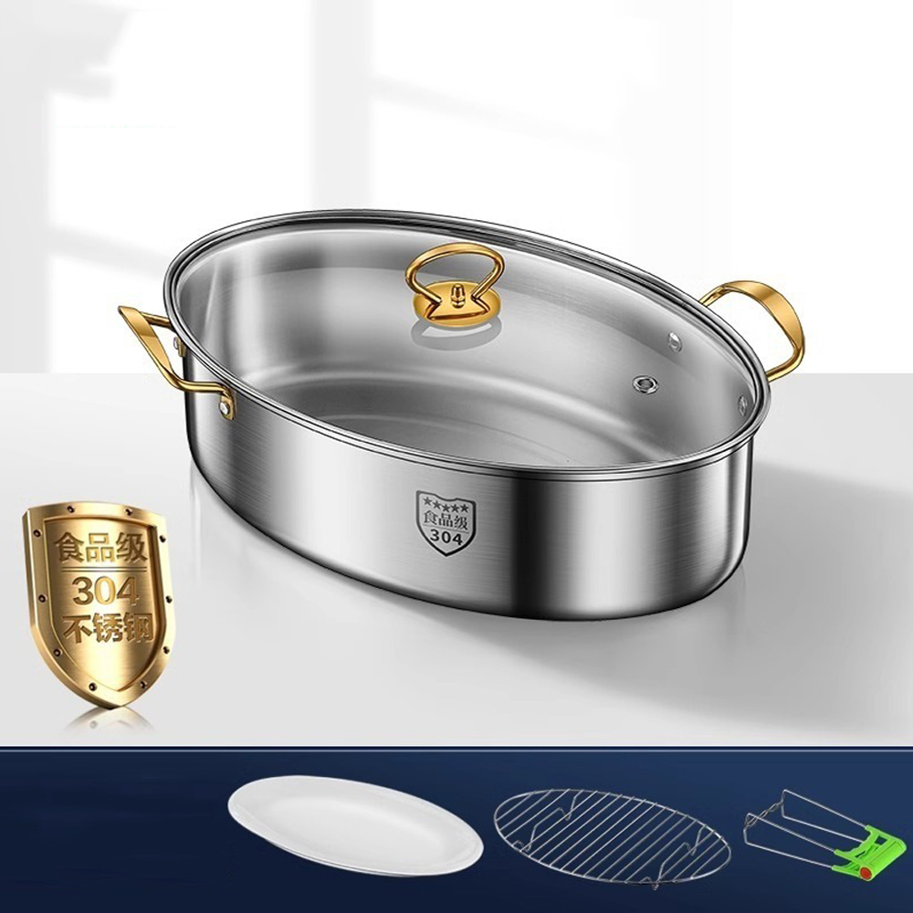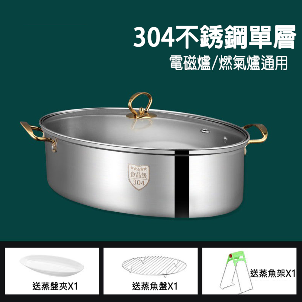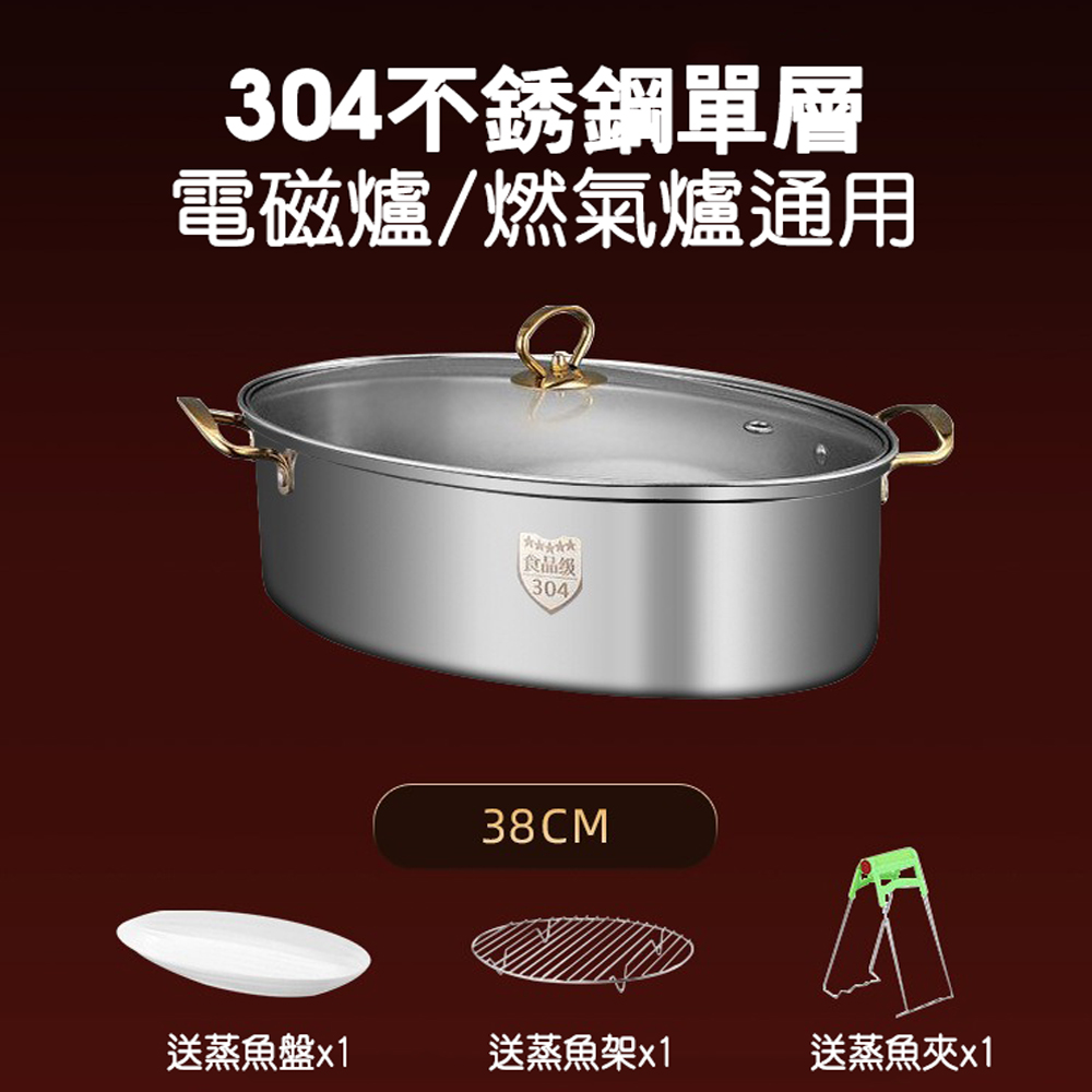 38CM 304不鏽鋼橢圓蒸魚鍋蒸籠鍋