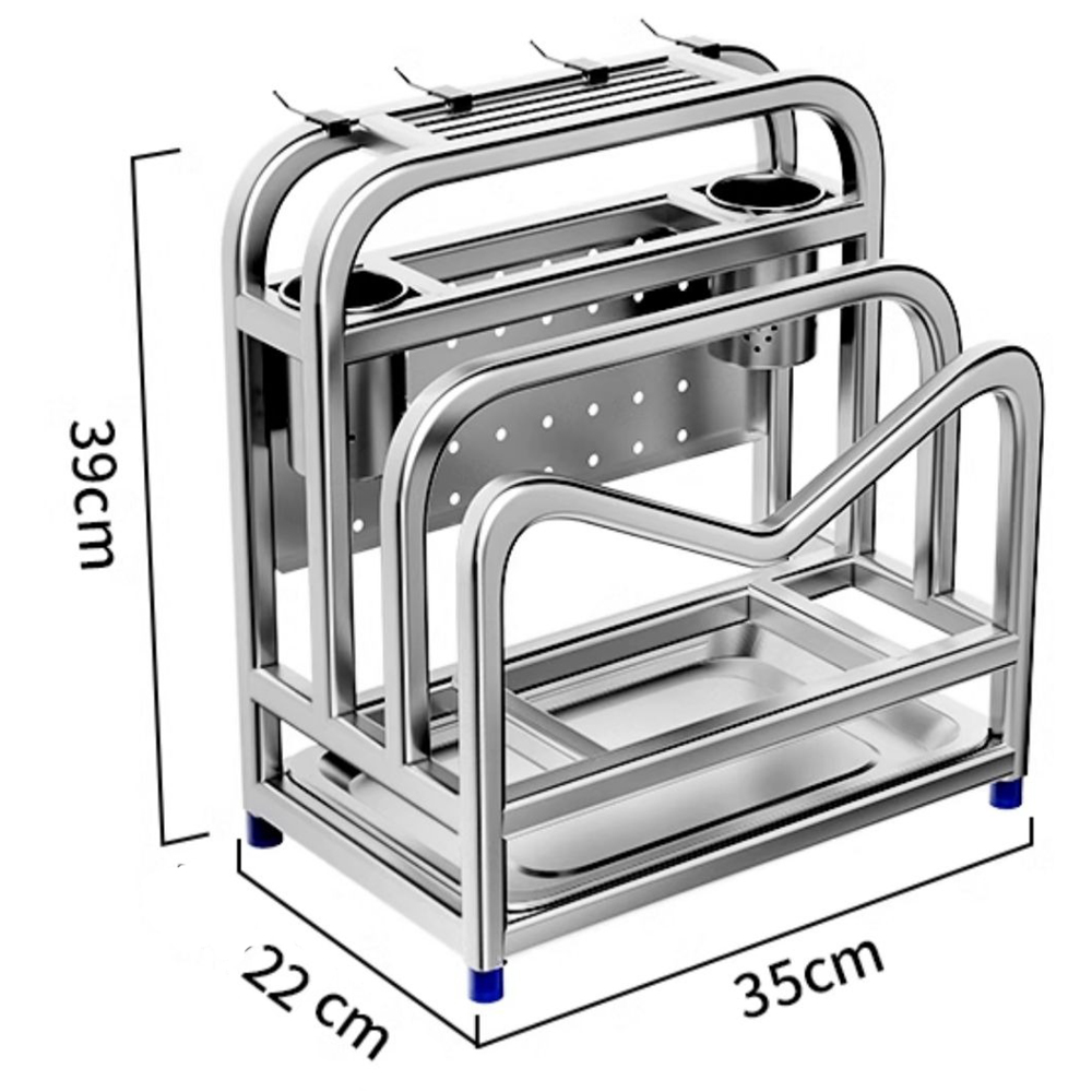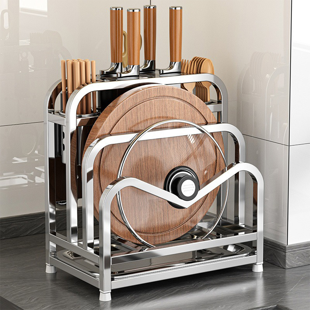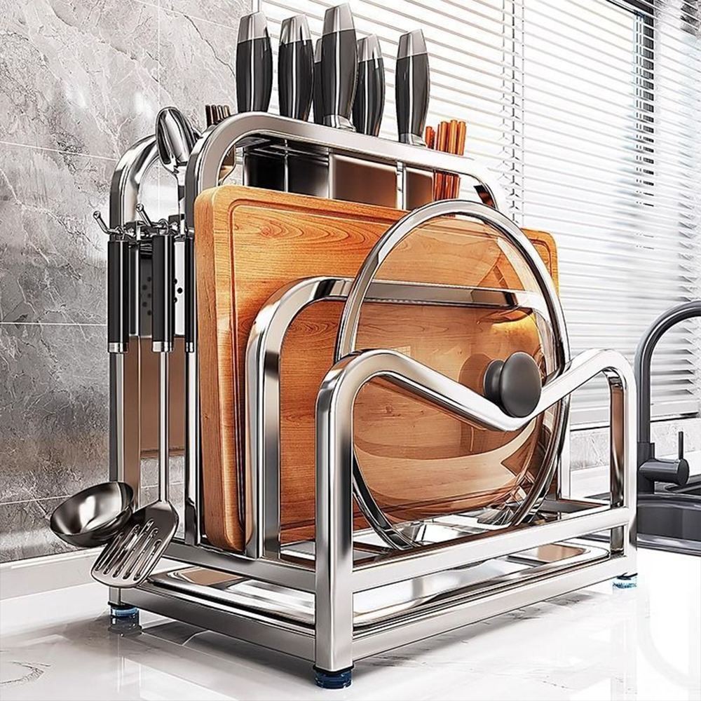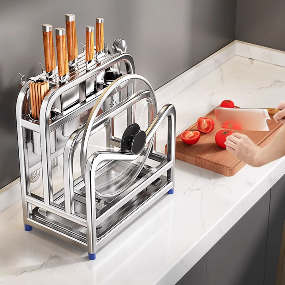 Heightened and widened 304 stainless steel kitchen integrated knife rack, cutting board rack, double slot chopstick cage, pot lid storage rack