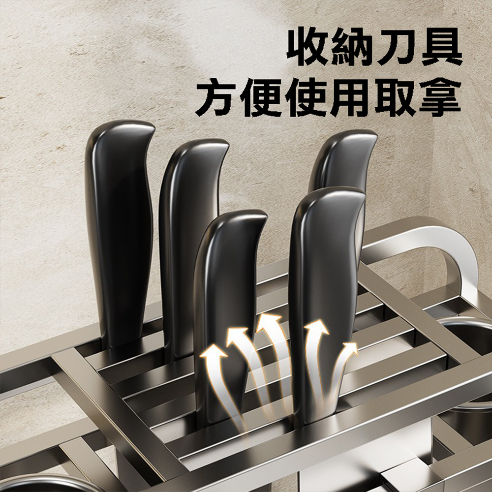 加高加寬款201不鏽鋼烤漆/304不銹鋼廚房一體刀架砧板架雙槽筷子籠鍋蓋收納架
