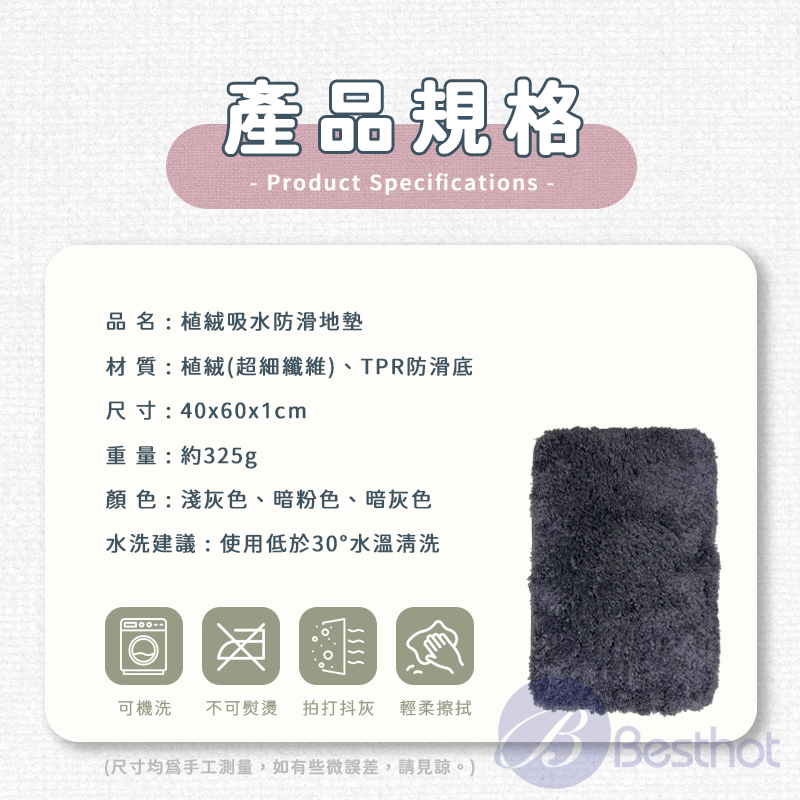 【Besthot】植絨吸水防滑地墊
