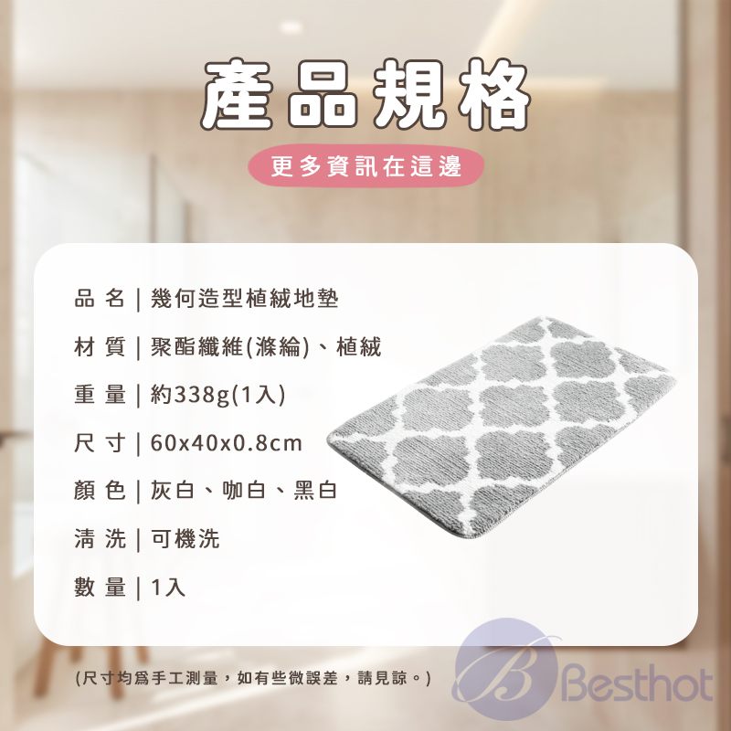 【Besthot】幾何造型植絨地墊