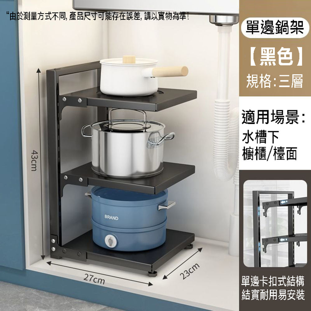 可調節設計,廚房鍋具置物架,大容量一架收納