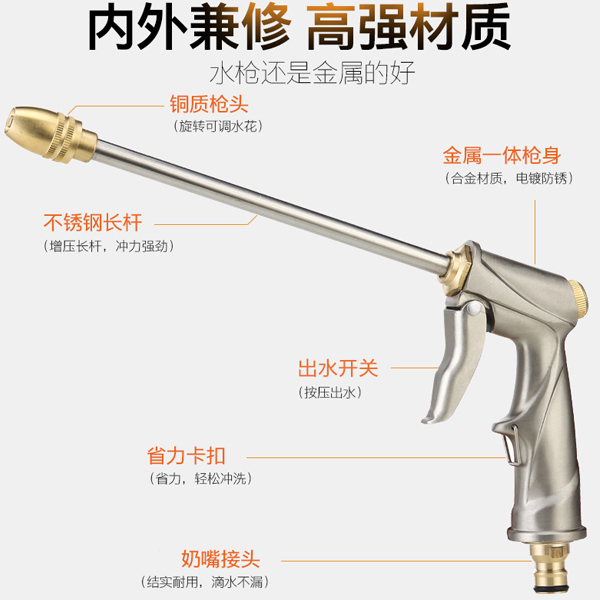 Pure copper pressurized watering can, car wash high-pressure water gun nozzle, high-pressure cleaning water gun, dual-purpose cleaning product for home and car.