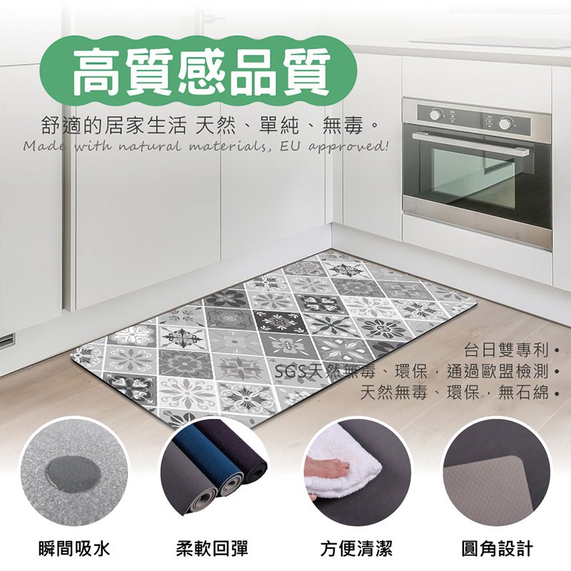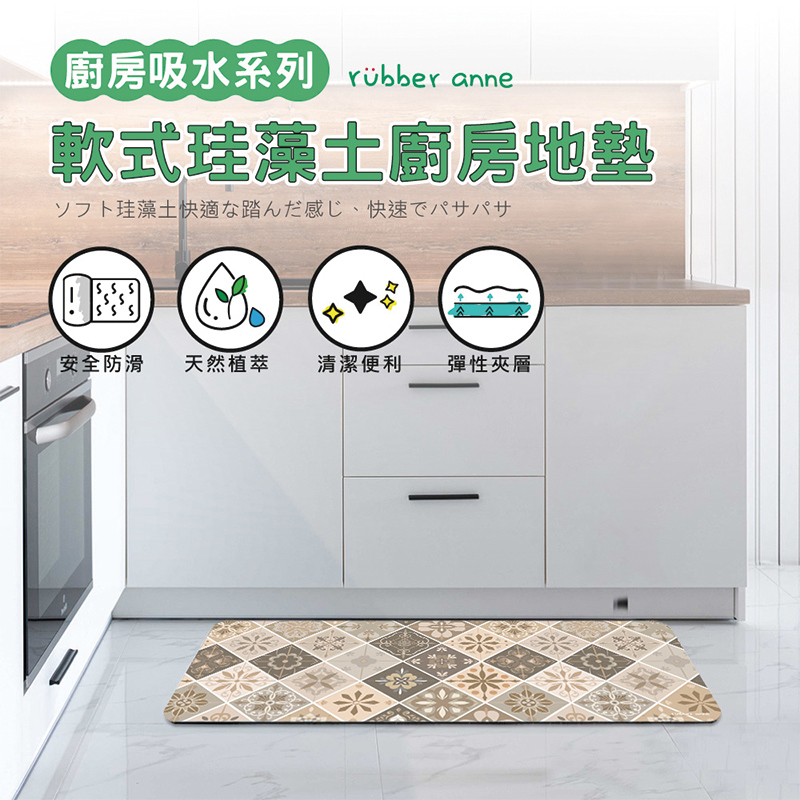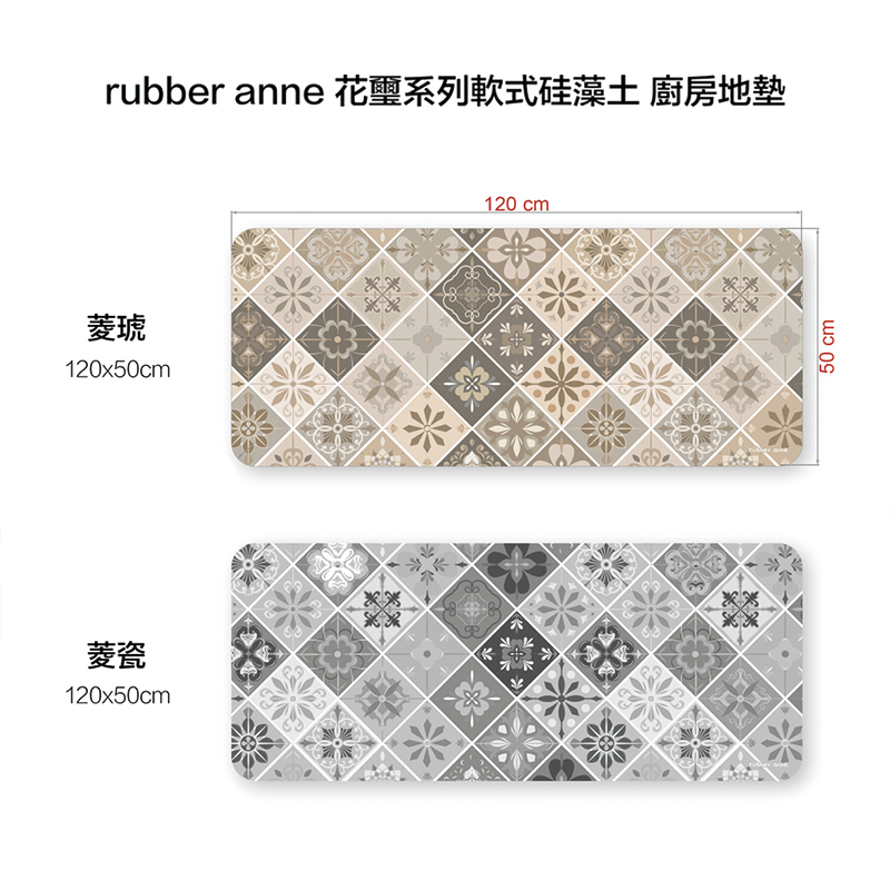 【Monster】 Soft Diatomaceous Earth Kitchen Absorbent Mat – Floral Seal Series (120x50cm) – Porcelain Diamond