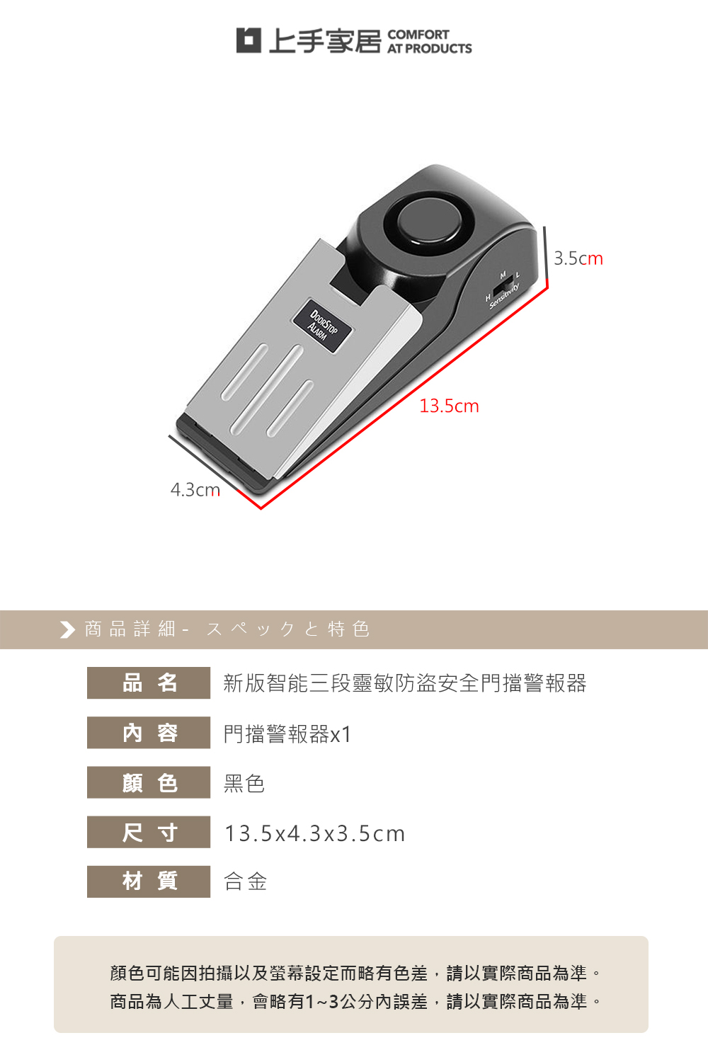 這款三段式防盜門擋警報器,特別為經常出差、外宿或獨居者設計,解決了傳統門鎖無法提供即時警示的困擾。只需將它置於門後,一旦有人試圖開門,高達120分貝的警報聲便會立即響起,不僅能嚇阻入侵者,更能及時喚醒你。輕巧便攜,是你在陌生環境中也能安心入睡的守護者。