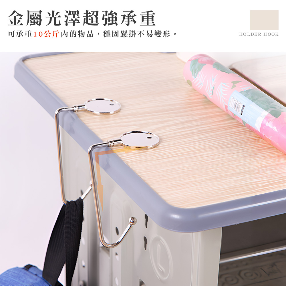 這款金屬桌邊掛勾特別適合通勤族與學生,能有效解決在咖啡廳、辦公室或教室裡,隨身包包無處安放的困擾。只需將圓盤底座輕放於桌面邊緣,即可創造一個穩固的掛物空間,讓您的包包、提袋隨手掛放,既不佔空間也遠離地面髒污。