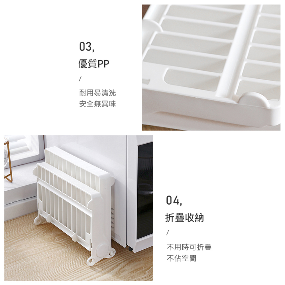 這款可折疊盤子瀝水架特別適合小坪數廚房,能有效解決流理臺空間不足與碗盤瀝水慢的困擾。立式收納讓每個盤子分開站立,鏤空設計加速通風,洗完的餐具能快速乾燥。最棒的是,不用時可完全折疊成薄片,輕鬆收納,讓廚房空間運用更靈活。