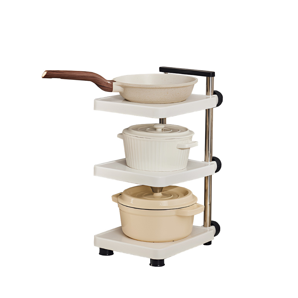 這款可調式鍋具收納架,特別適合想整理廚下空間的你,能有效解決鍋具堆疊、拿取不便的困擾。免工具即可自由調整層板間距,無論是深湯鍋、平底炒鍋都能輕鬆收納,穩固的吸盤底座讓你在櫥櫃或檯面放置都安心,讓廚房收納變得井然有序。
