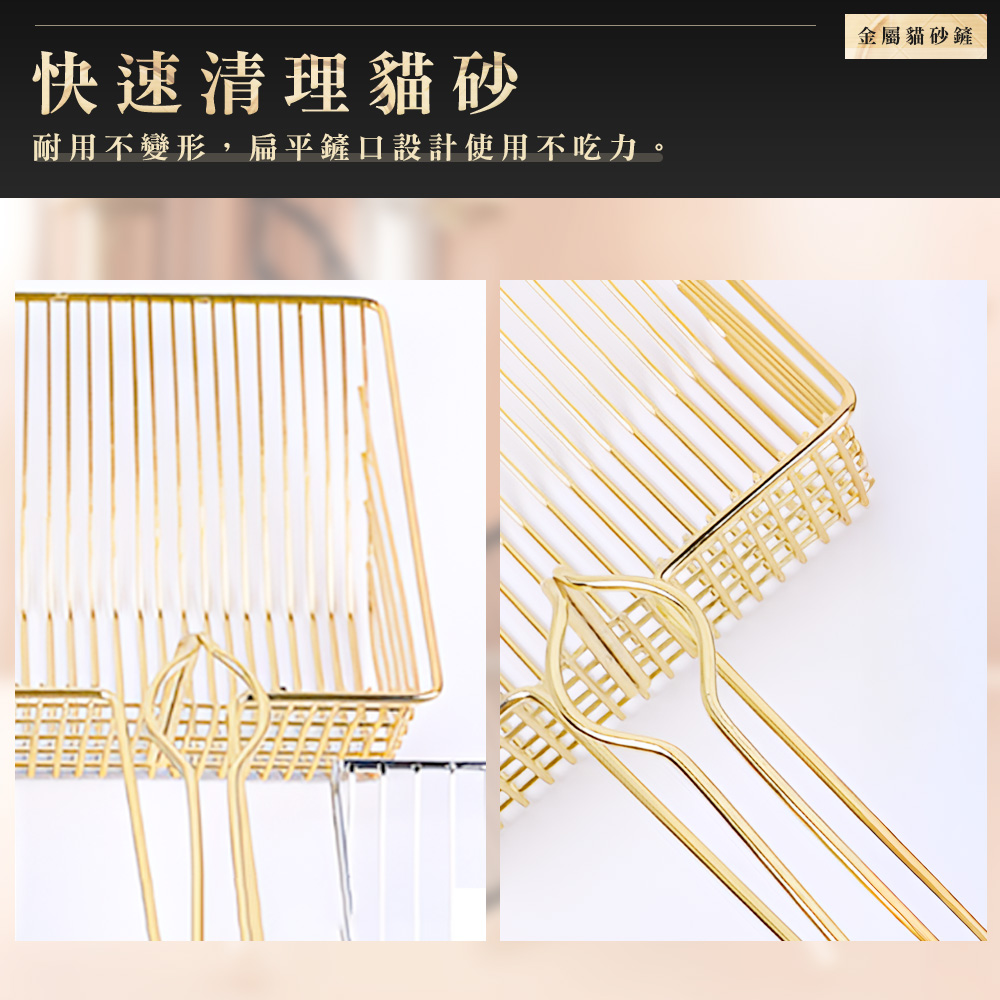 ⚠ 溫馨提醒:金色款網格間距約1cm,適合條型豆腐砂;銀色款間距約0.5cm,適合細小的礦砂或破碎砂,請依貓砂類型選購。網頁圖片因拍攝關係會與實際商品略有色差,顏色請以實際收到商品為準。