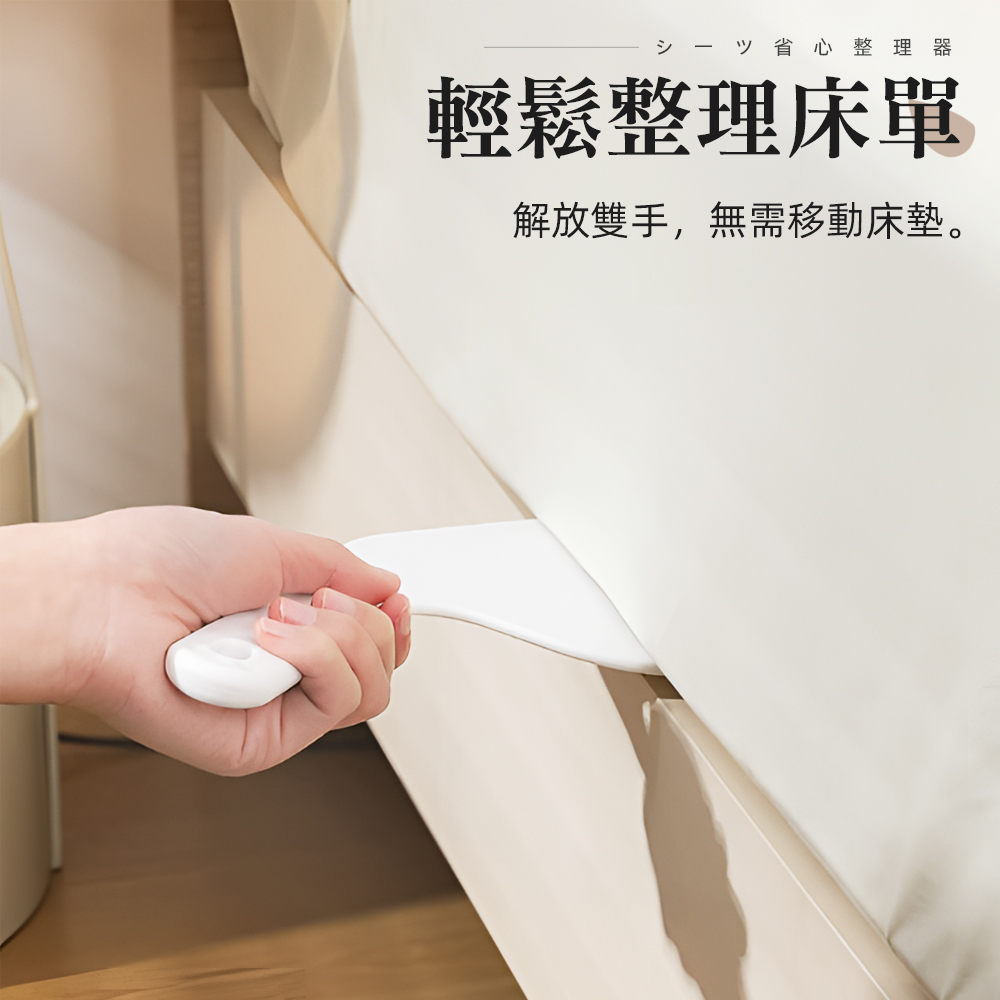 這款床單整理器特別為了解決鋪床困擾而設計,讓您無須移動床墊,只要順著縫隙滑入,就能輕鬆將床單塞得平整又牢固,告別整理床鋪時的腰酸背痛,讓做家事變得更有效率。