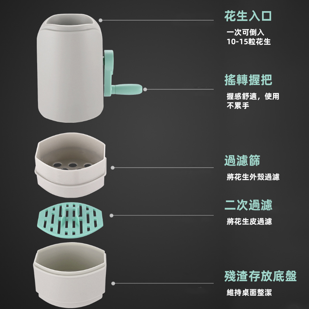 ⚠ 溫馨提醒:本產品適用於曝曬過的乾花生或炒花生,不適用於新鮮或濕軟的花生。