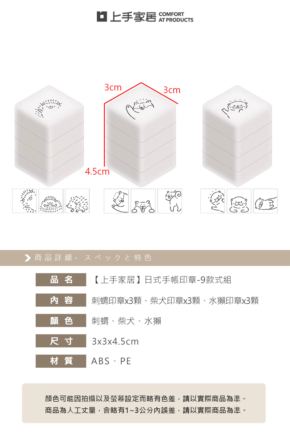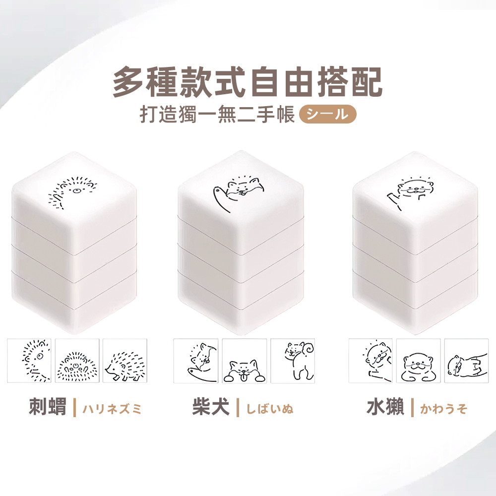 這款日式手帳印章組,包含刺蝟、柴犬、水獺三種款式,讓你隨心搭配,打造獨一無二的手帳風格。連續印章設計,使用超方便,輕輕一蓋,可愛圖案躍然紙上,為生活增添小驚喜。對於喜歡手作、熱愛記錄生活點滴的你,這款印章組能有效改善手帳單調,增添更多樂趣。