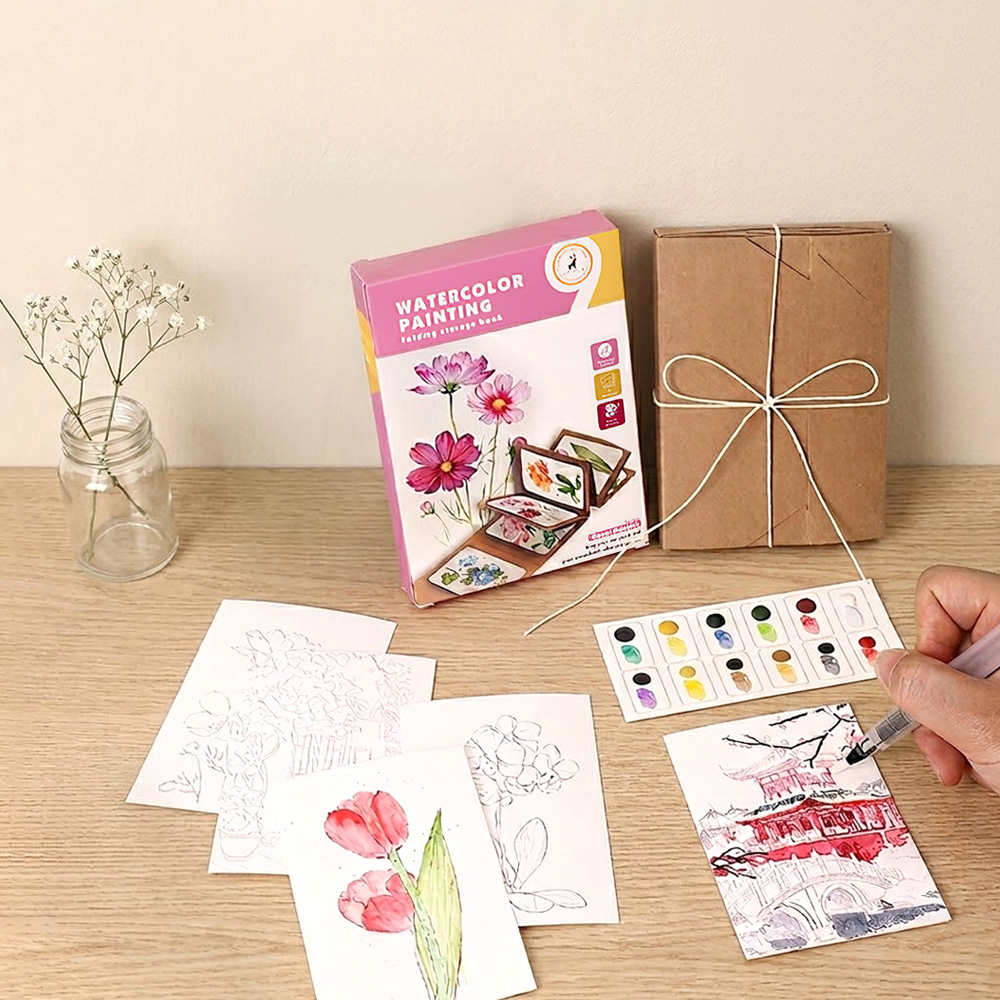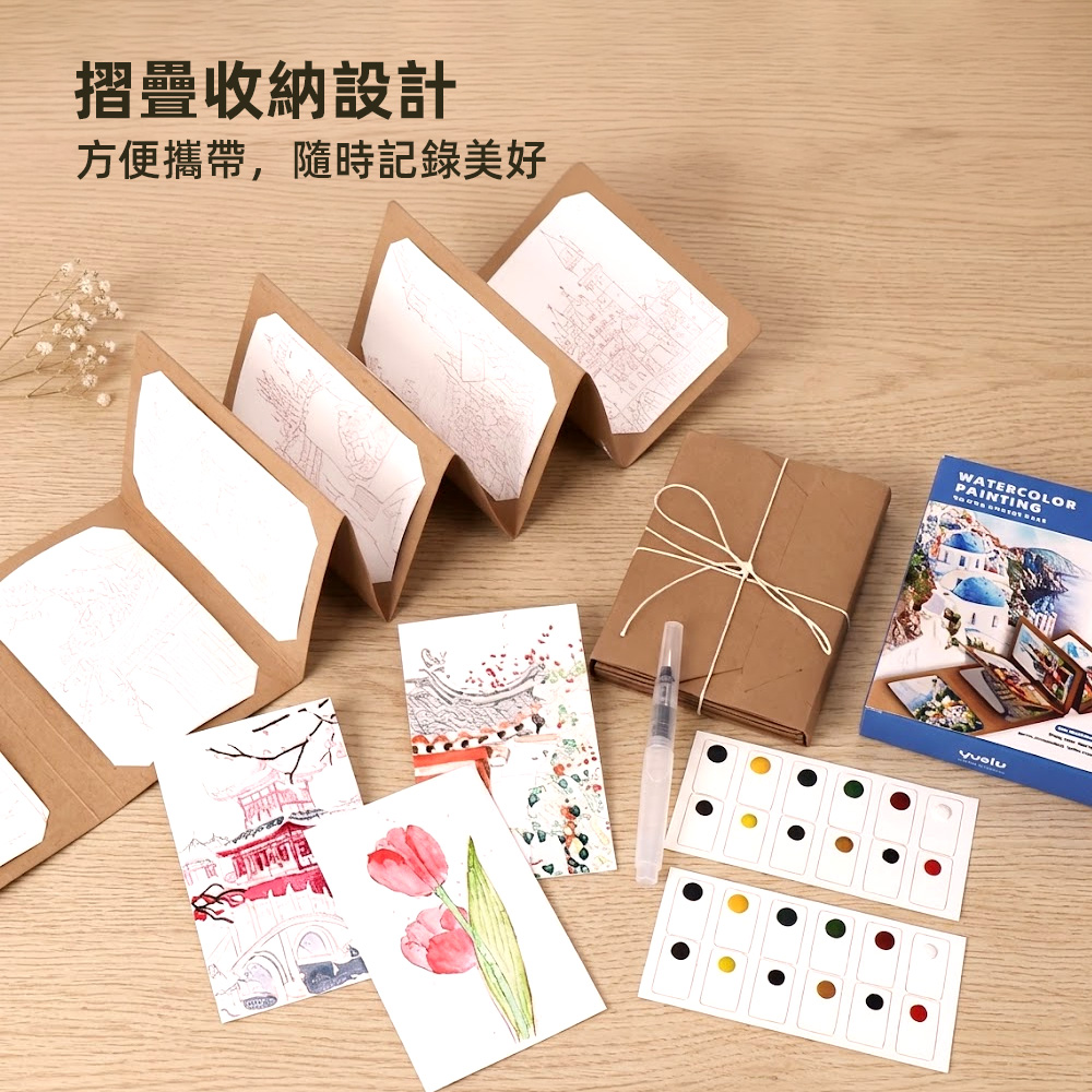這款風琴摺頁水彩練習本特別適合喜歡繪畫、享受著色樂趣的朋友,解決了攜帶不便的困擾。內含9張加厚畫紙,不易暈染,搭配水彩顏料與水筆,隨開即畫,方便隨時記錄美好。摺疊收納設計,輕巧不佔空間,讓您隨時隨地都能享受繪畫的樂趣,記錄生活中的美好。