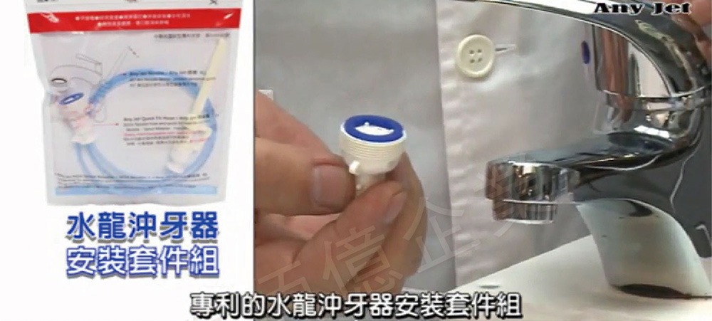 .適用多數水龍頭.免電、環保、健康.五國專利好品質.僅限安裝於內牙式水龍頭.專利字號:第506585號 本賣場內容以標題為主,若疑問請留言詢問 ★免插電,安裝水龍頭即可使用,方便又實用。 ★可在第一時間清潔牙齒,搭配正確刷牙習慣預防蛀牙、保養牙齦。 ★能迅速清潔餐後殘留於牙面及牙縫間的食物殘渣。 ★對於有牙科方面問題者,更是不可或缺的清潔小幫手。專利結構設計-方便、環保且免電、省力、用水量少★個人專屬、衛生加倍(降低交互感染機率) 。 ★ 無須安裝,更人性化方便的使用。 ★不需插電、人體工學設計,專利結構體,無段式水壓 ★ (免插電無噪音) 大人小孩操作容易上手、省力又環保。擁有多國發明專利 貼心提醒:好的發明與設計是需要去熟悉並試著改變使用習慣的請務必記得是要靠近牙縫間牙齦溝沖洗,而不是遠遠的噴射初次使用會覺得癢癢的,好像水柱在搔癢你的牙齒(如果牙周有狀況的可能會有痠軟感)多沖2分鐘,練習適應一下, 搔癢的感受就會變成水柱按摩牙齦的感覺真的非常舒服又健康,您必須親自體會,練習後會愛上使用,從此牙齒口腔更健康,並要推薦給您的家人和朋友台灣發明的好產品必須要讓大家感受到。只限於安裝在內牙式,一般是有裝起泡器的水龍頭只要將出水口的起泡器逆時針方向轉下來,再將我們附贈的起泡轉接頭鎖上去即可要沖牙的時候將沖牙器的塑膠螺帽頭對準轉接頭旋轉扣上1秒搞定,超簡單!然後開水龍頭就會沖出強力水柱, 水柱大小依個人習慣從水龍頭調整即可!特殊食品級螺旋設計彎管,不打結、好操作、非常方便!全部不插電免手壓、不費力、不手酸、是最新改良設計的水龍頭式增壓沖牙機。 注意事項:※請勿直接沖洗口腔以外器官,以免造成危險!!※幼童使用需有大人在旁指導!!※沖牙器為個人專屬噴頭及軟管需保持乾淨!!※請勿用強力水柱直接朝牙齦沖洗,以免傷害牙齦 !!※沖牙器一般適用於牙縫或牙根口腔異物清除,不能以沖牙或漱口方式替代刷牙喔!!產品名稱:AnyJet立捷雅專利水龍頭沖牙器產品材質:PP、PU、PE、矽樹脂適用規格:外牙23.5mm之水龍頭產品重量:主體-約21g、替換頭-約4g製造產地:台灣