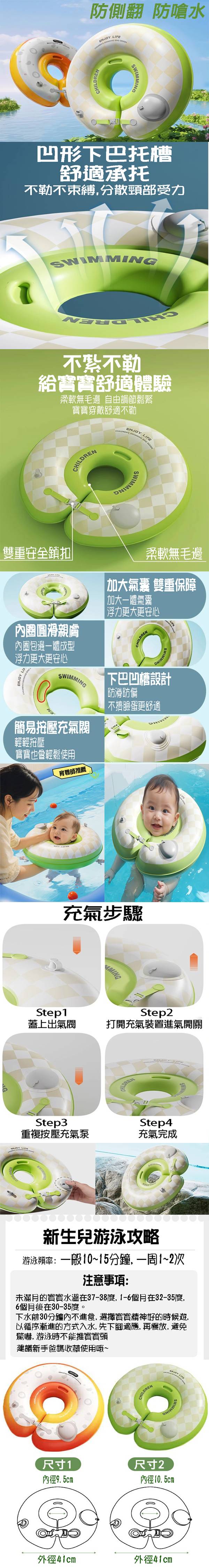 ※請注意:嬰兒游泳圈並非救生產品。寶寶經常會做出意想不到的動作,因此家長應在場監督。請勿讓寶寶獨自游泳※