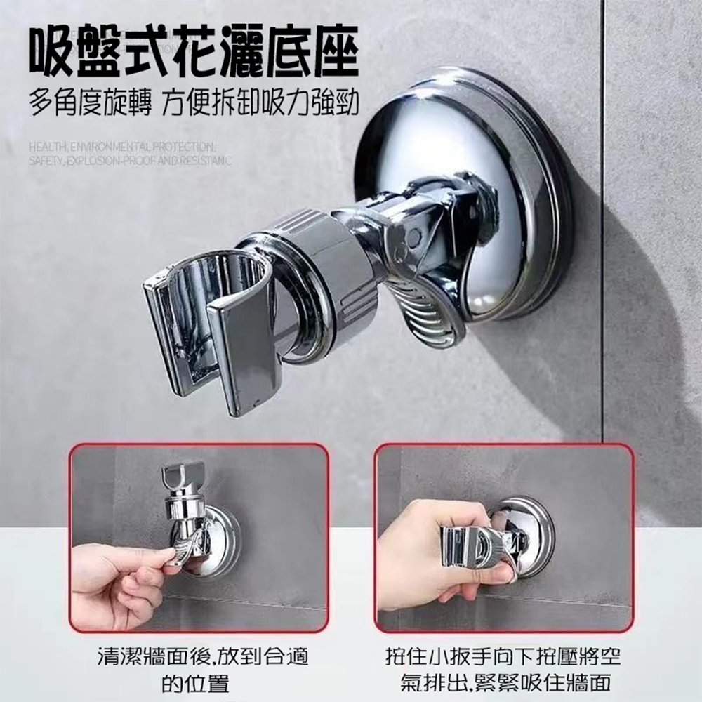 第2代蓮蓬頭萬向強力吸盤座加大7公分的真空強力吸盤,免釘、免鑽孔,完全不會破壞牆面,只要平面都可安裝,安裝時只要輕輕一壓就能強力吸附。360度角度調整設計,愛沖哪裡就沖哪裡,完全沒有角度侷限。承重可達6公斤以上,再強的水壓都不會掉落。可重複安裝,要高要低自由調整。國際4分口徑大小,適用大部分蓮蓬頭吊掛。ABS塑鋼製造,堅固又耐用,外層採用高質感電鍍製造,讓您沐浴出好心情!!