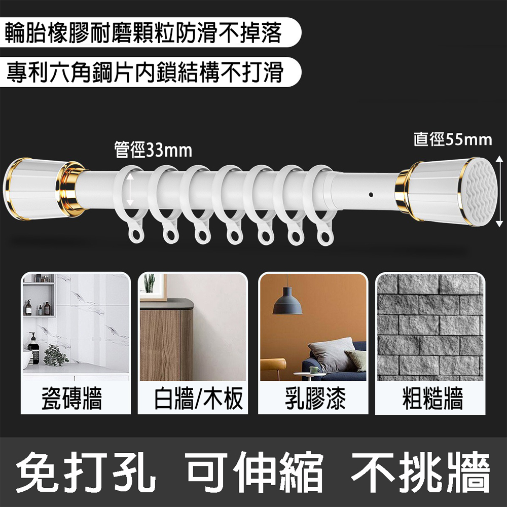 品名 可伸縮2.6-5.0m免打孔 彈簧羅馬桿 商品介紹