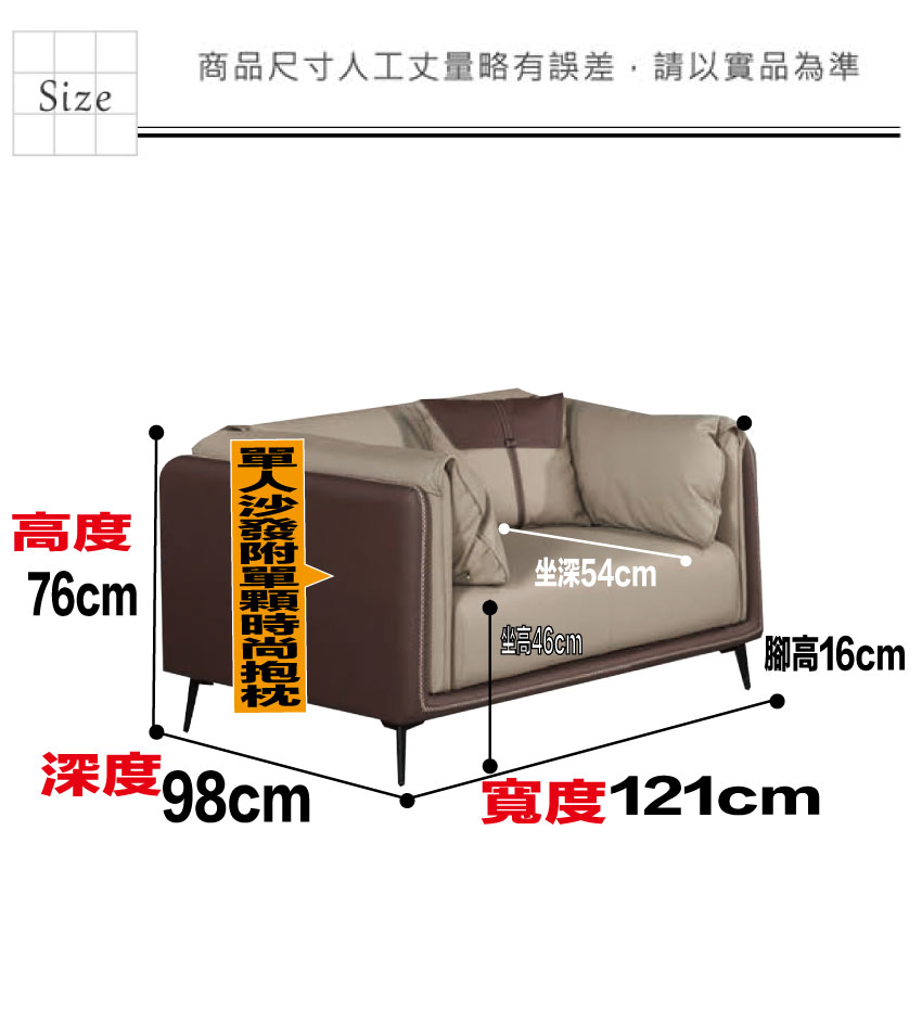 【文創集】海德雙色透氣皮革單人座沙發椅 時尚雙色系+現代美型外觀+安心材質製造,就是這種頂級質感的設計,能輕鬆地融入各種空間風格,採用內部實木板材框架+烤漆金屬腳座+透氣柔韌皮革+高回彈力加厚泡棉等安心材質製造,品質安心有保障,現在購買專人送到府服務,免組裝+免運費,讓你省時省力省運費!