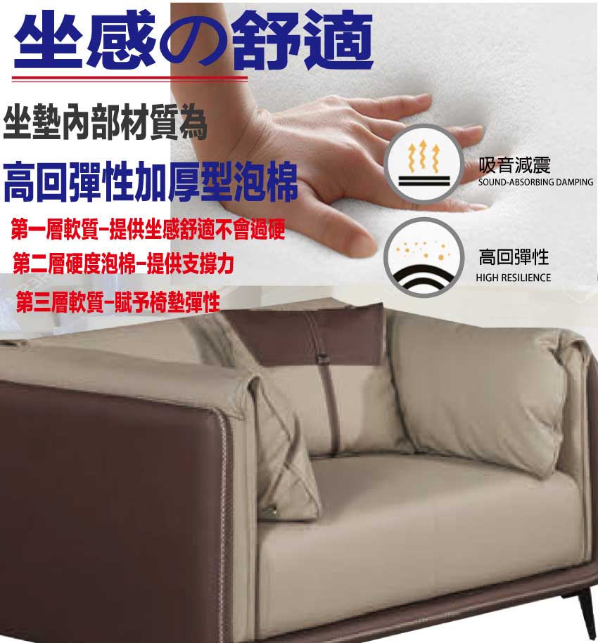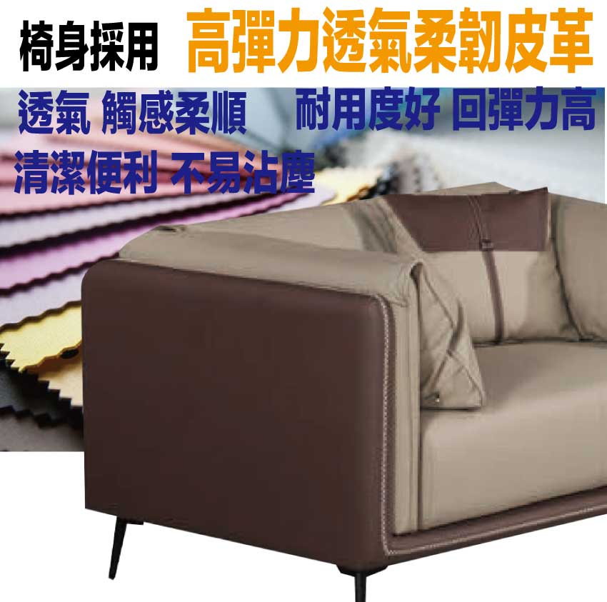 採用內部實木板材框架+烤漆金屬腳座+透氣柔韌皮革+高回彈力加厚泡棉等安心材質