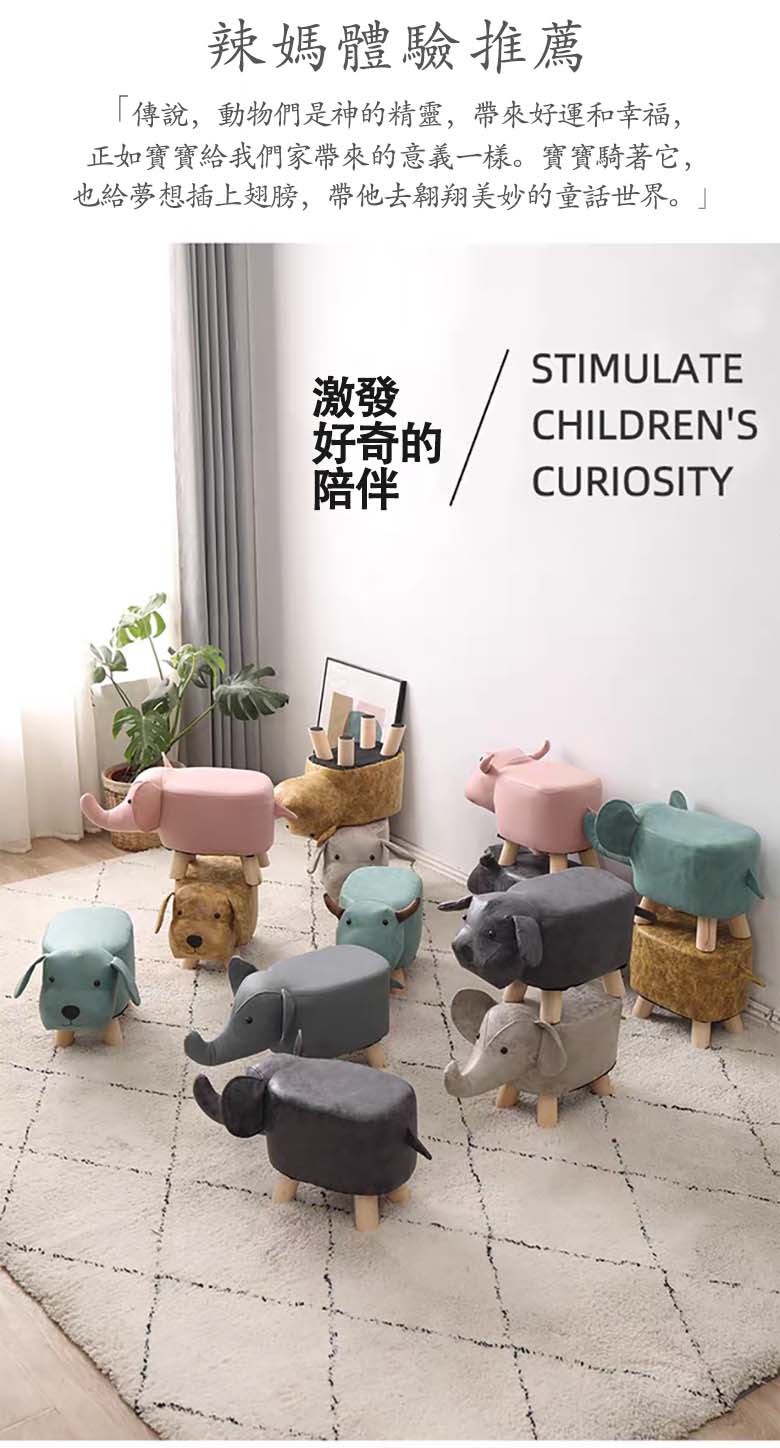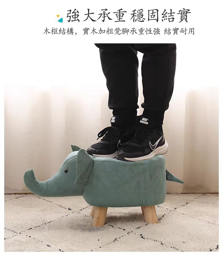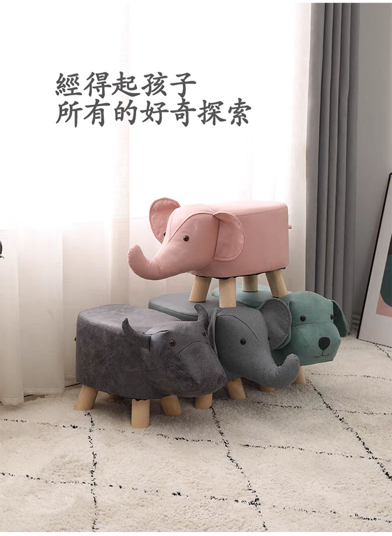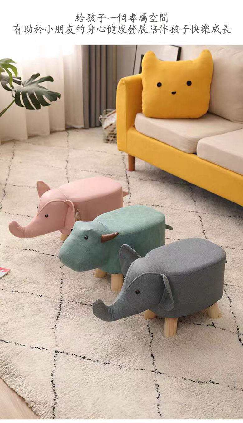 Creative animal-shaped solid wood children's stool, elephant, light gray