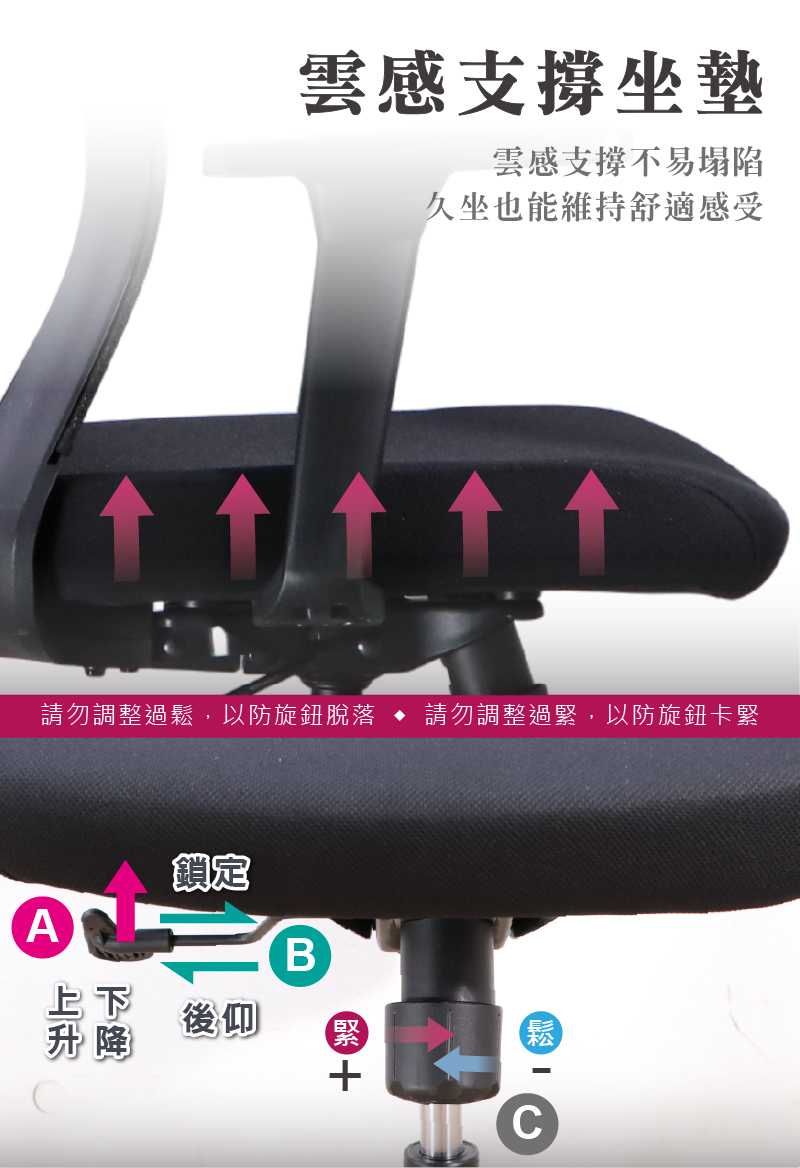 ★支撐坐墊雲感支撐不易塌陷,長時間久坐也能維持舒適感受。