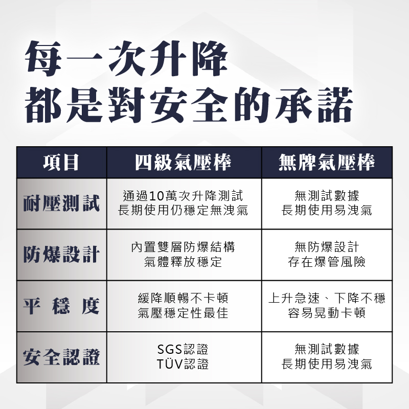 ✔ 四級氣壓棒每一次升降,都是對你安全的承諾