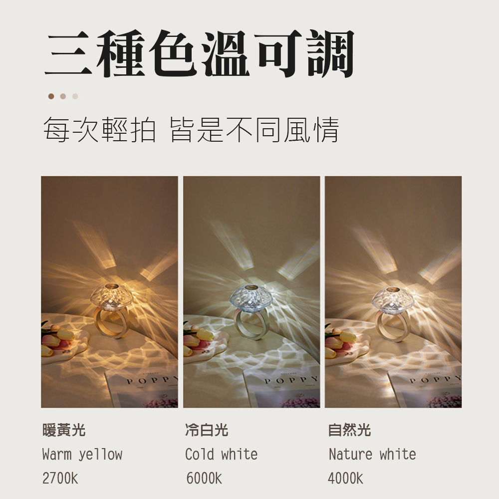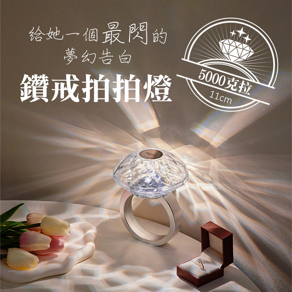 ✨ 誰說5000克拉的鑽戒只能是夢想?把愛情的光芒化作溫柔的燈光一個輕輕的觸碰就能切換不同的心情💫 告白那天,在浪漫的投影燈下寫下第一封情書;💍求婚時,讓巨大鑽戒投影為你創造最璀璨的氛圍;💝結婚週年,在溫暖光影中重溫最初的感動不用天價也能擁有的夢幻巨鑽,為生活中的每個重要時刻,增添獨特的浪漫色彩。輕輕一拍就能變換✨三種燈光,💝就像愛情一樣,每一種模式都美好獨特【使用說明】●開關燈:輕按開關(開機默認自然光)●切換燈色:輕拍燈體(燈色循環切換:自然光→冷白光→暖黃光)●TYPE-C充電指示燈:充電中亮光燈,充飽電亮綠燈【產品信息】品名:鑽戒拍拍投影燈材質:高透壓克力、LED燈珠、電子零件尺寸:12*12*15cm重量:約150g電源輸入:DC 5V/1A額定功率:0.5W充電時間:約1.5小時續航時間:約5~8小時電池容量:500mAh