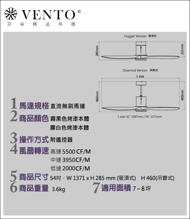 【VENTO】 PURO 54"-DC ceiling fan with plasma purifying technology