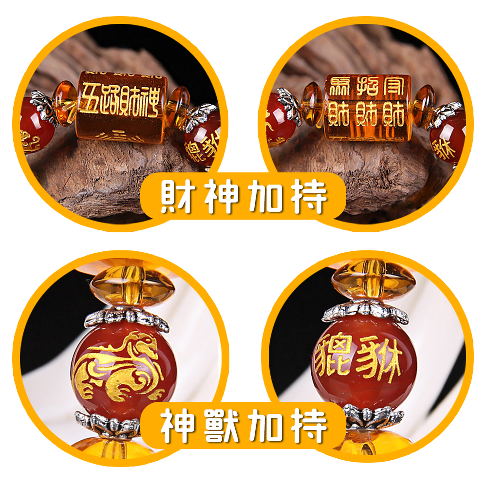 再搭配貔貅與四神、財神符等刻珠。