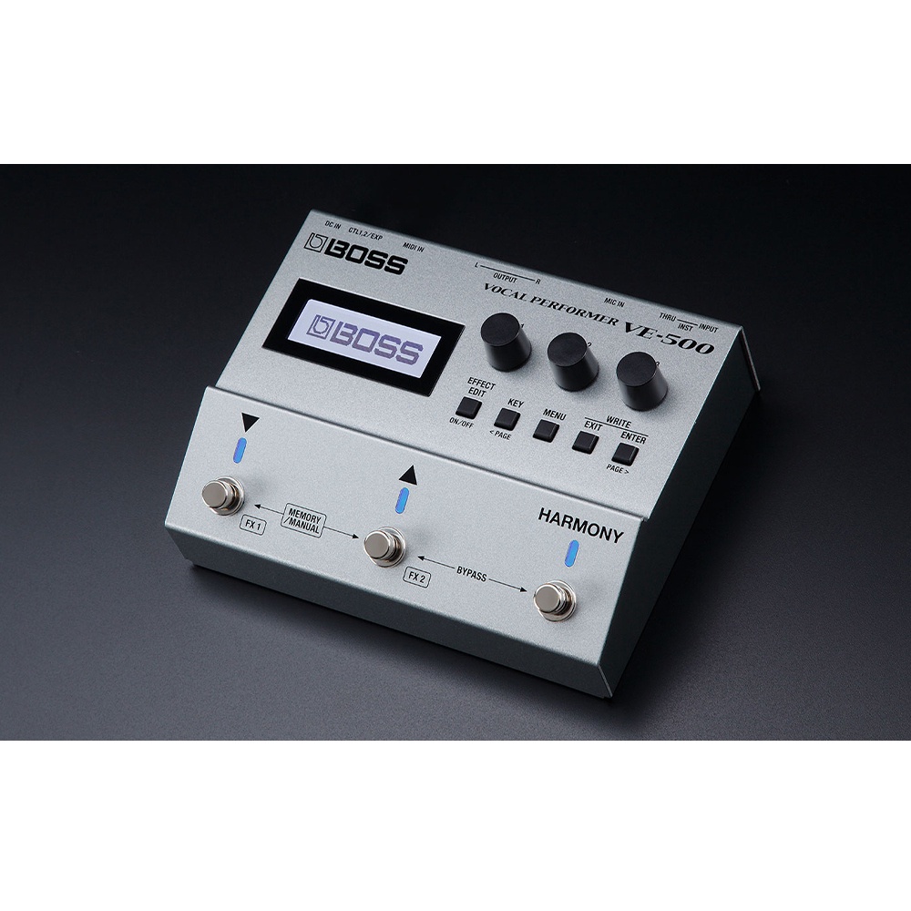 專為吉他手而生的強大工具, VE-500人聲效果器,提供你在舞台上所需的人聲合音效果和效果器,。 ● 和聲、FX、Looper功能 ● 自動偵測吉他和弦,產生和音 ● 立體聲XLR輸出端子,將人聲傳送至PA混音器或錄音 ● 高效能的BOSS DSP引擎,可同時多達9種效果器處理人聲 ● 三個可自設功能開關踏板,支援使用最多兩個額外的外部開關踏板或一個表情踏板 【自動人聲和音效果】 自動合音引擎採用了先進的BOSS處理技術,可偵測吉他彈奏的和弦與調性, 在演唱時即時產生流暢自然的二聲部到三聲部合音,透過不同的合音模式,可以根據歌曲所需, 為具有較複雜調性結構的歌曲調整合音內容。合音引擎也可以透過MIDI(VE-500、MIDI或是USB輸入)來啟用, 讓你能夠使用MIDI鍵盤或是DAW製作的背景音樂,來產生音高完美的現場合音。 【豐富的效果功能】 VE-500 內建多種效果器,具有深入編輯參數可打造出各種人聲效果。 此外,極其靈活的效果串接設置選項,可以一起或分開處理現場和合音的人聲。 使用Enhance、Compressor、de-esser、EQ,等重要功能來修飾您的聲音, 兩個專用的Reverb、Delay,來產生從細微的音色潤飾,到大幅度的音場效果調整。 還有四個獨立FX引擎,每個都包含大量的效果器類型。您可以加一點點和聲、flanger或顫音, 添加一些輔助的殘響或延遲效果,或是使用distortion、 radio voice、 ring mod、slicer、filtering 等較為極端的效果,讓您的想像力無限發揮! 【Vocode 功能】 VE-500的另一個殺手級功能,是它強大的Vocode 功能,這是來自BOSS 創新的VO-1 Vocoder效果器。 在演奏的時候對著連接的麥克風發出聲音,可以將吉他音色轉換為電子人聲,以及多種全新的現代音樂風格。 甚至可以重現傳統talk box 聲音效果,不需要使用talk box設備和橡膠管就能夠立即產生經典“talking lead guitar”音色。 【自動音準校正功能】 配備專屬Pitch Correction 音準校正功能,如合音功能般利用吉他或MIDI來使用。 可以運用它來保持音準穩定度,它也可以切換為變換模式,可提供更多流行音樂裡聽到的特殊效果器聲音, 包括強硬的音高校正、電子發音、甚至機器人發音等效果音色。 【多樣化的控制功能】 直覺的顯示螢幕和面板配置的旋鈕/按鍵,讓音色的製作和調整都相當簡單。 99個可儲存效果設定,能在表演中時隨時切換,還可使用Editor/librarian軟體, 從Mac或Windows 進行效果音色的調整和組織。三個面板旋鈕也可以設置為您愛用的參數, 在演出時輕鬆操作使用,三個腳踏板可操控多種功能,包括效果音色選擇、個別效果器開/關、 合音、Looper功能等等,還可以透過另行外接的開關踏板、表情踏板或MIDI擴充更多種功能的控制。 【規格說明】 取樣頻率:48 kHz DA 轉換:32 bits 效果音色:99 (使用者) + 50 (預設) 額定輸入等級:MIC IN: -40 dBu (可調)、INST IN: -10 dBu 輸入阻抗:MIC IN: 4 k ohms、INST IN: 2 M ohms 額定輸入等級:XLR OUT L, R: -40 dBu, -10 dBu (可選擇)、INST THRU: -10 dBu (Unbuffered) 輸出阻抗:XLR OUT L, R: 600 ohms 顯示幕:圖形LCD (132 x 32 dots, 背光LCD) 連接端子:MIC IN 連接端子: XLR型,平衡式, phantom power (DC 48 V, 10 mA Max) INST IN 接孔: 1/4吋耳機型、XLR OUT L, R 連接端子: XLR型 INST THRU 接孔: 1/4吋耳機型、CTL1,2 / EXP 接孔: 1/4吋TRS耳機型 USB COMPUTER連接埠: USB Micro-B type 電源供應:AC變壓器(PSA系列) 電流:310 mA (有phantom power)、210 mA (沒有phantom power) 尺寸:170mm x 138mm x 62 mm 重量:860 g