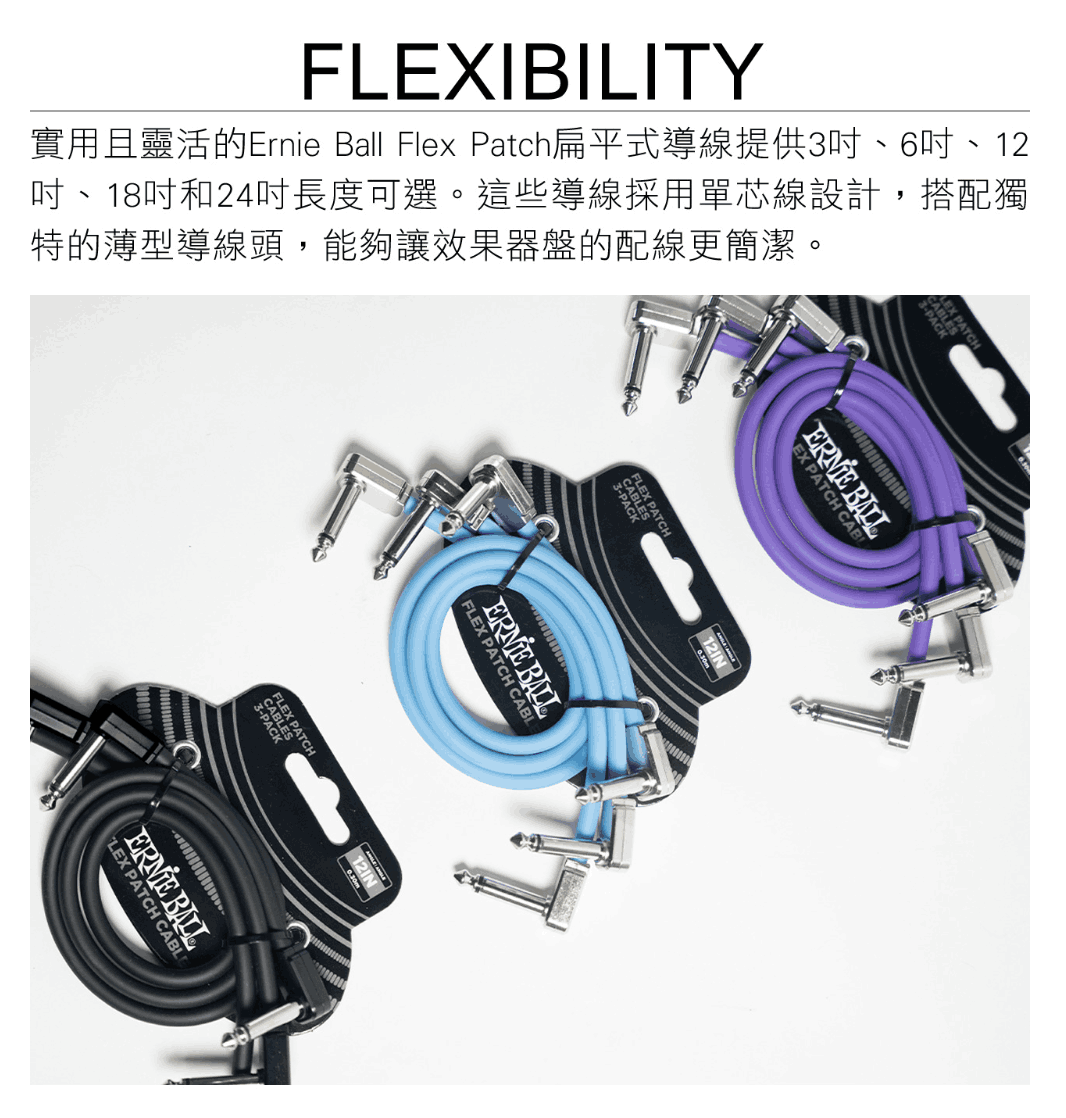 Ernie Ball Flex Patch Cable 3in ( P06451:Purple)