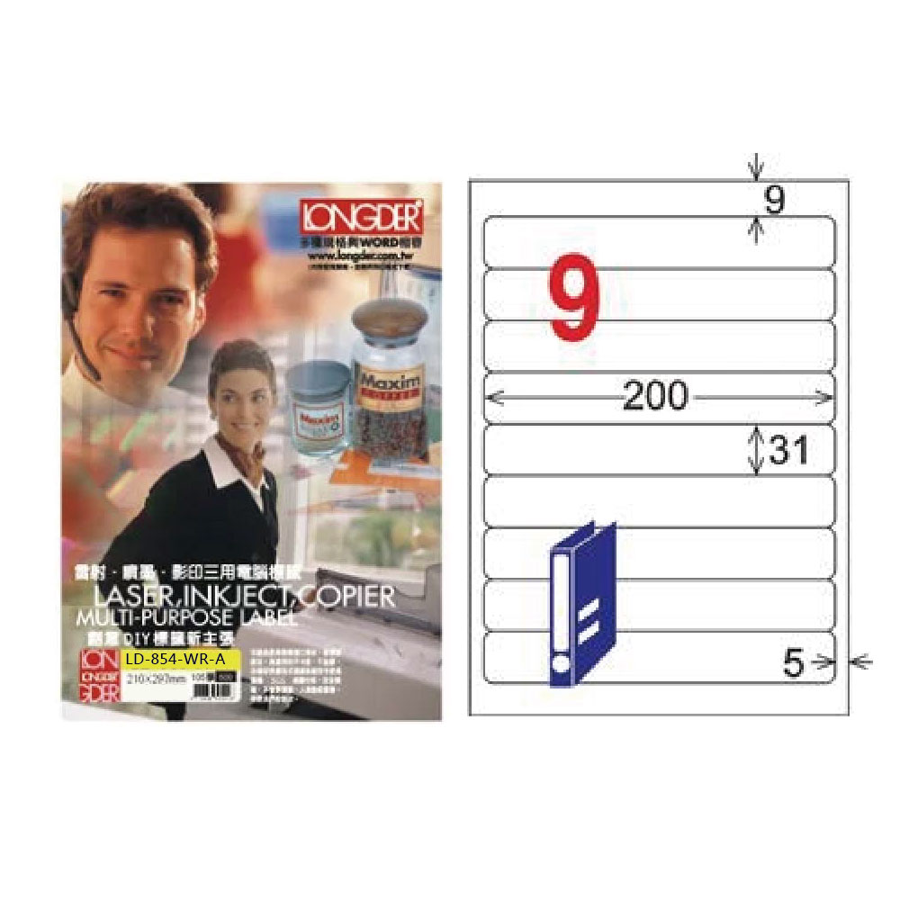 【龍德】LONGDER三用電腦標籤A4 9格 圓角 31*200mm 可再貼 105張3盒/組 LD-854-WR-A(適用雷射、噴墨、影印)