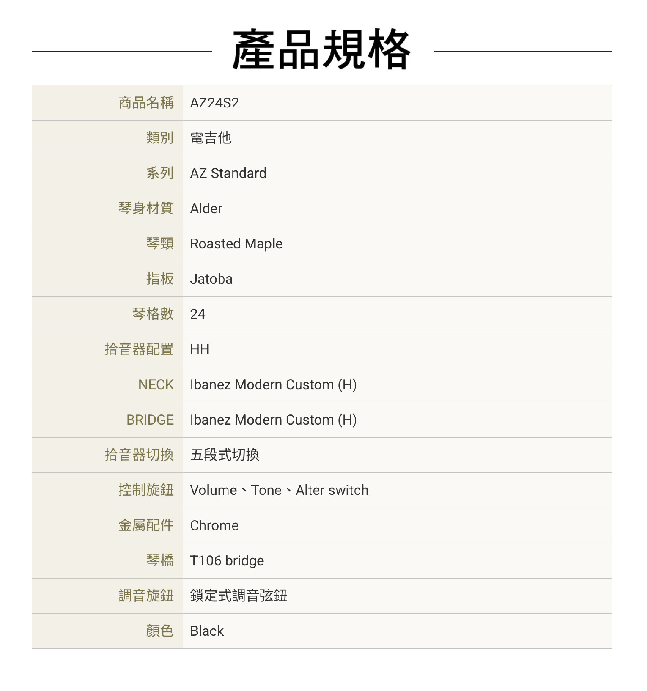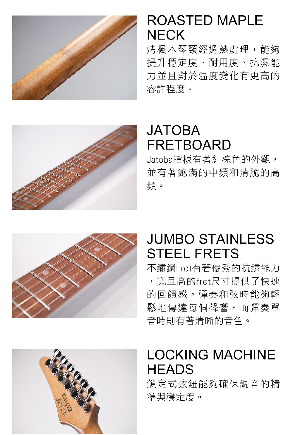 ● Jatoba指板搭配Roasted Maple琴頸