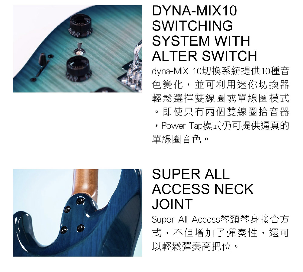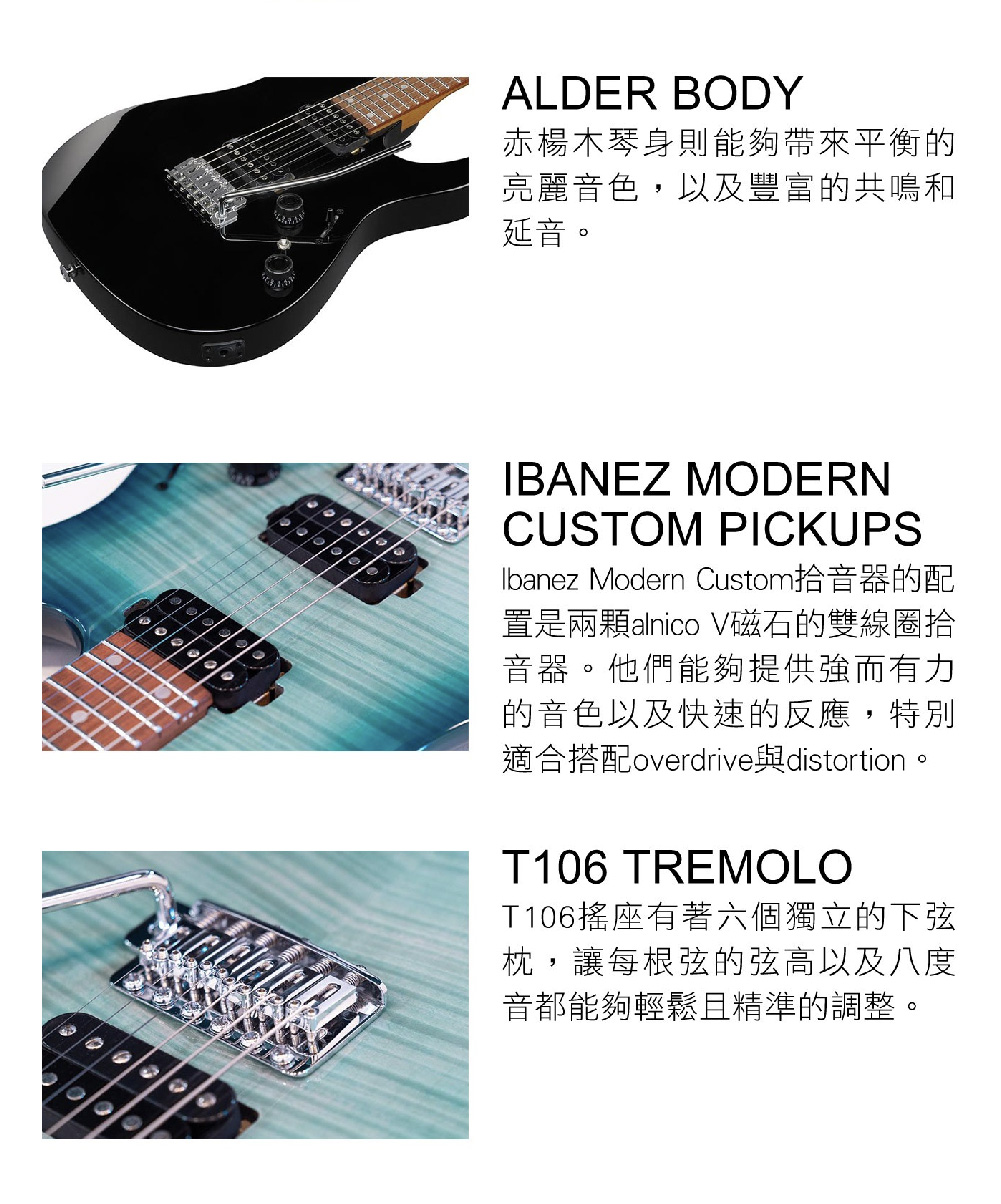 ● 琴頸段和琴橋段Ibanez Modern Custom雙線圈拾音器系統
