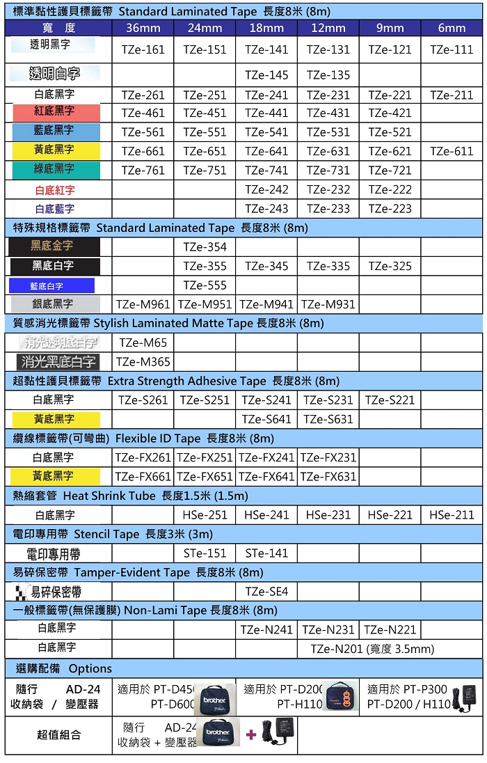 【 BROTHER】兄弟牌 白底黑字 17.7mmx1.5M 熱縮套管標籤帶 / 包 HSe-241