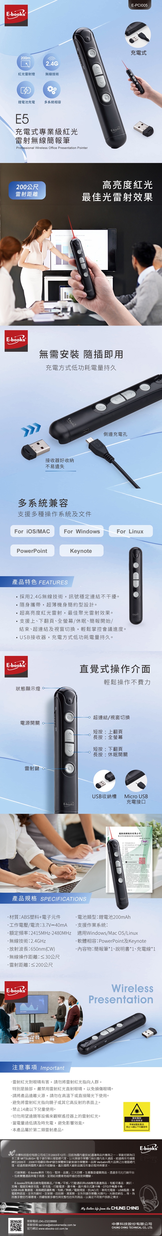 E-books E5 Professional Wireless Office Presentation Pointer