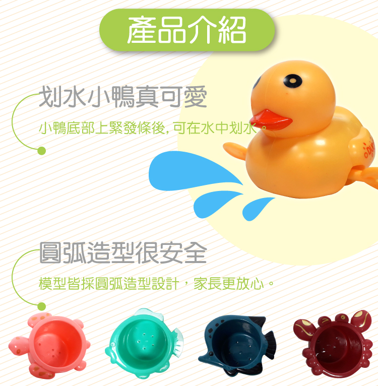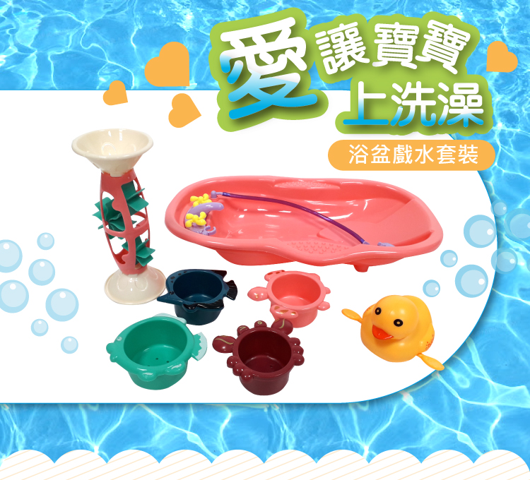 內容物:浴盆x1 小鴨子x1 魚x2 烏龜x1 螃蟹x1 流水器x1,共7件