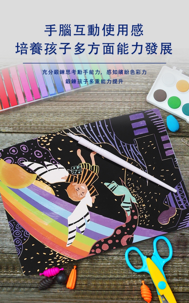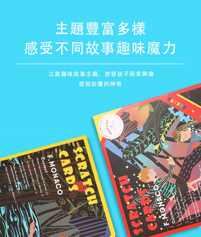 細節考究:附贈一支刮畫筆及六張刮畫組,品質包裝