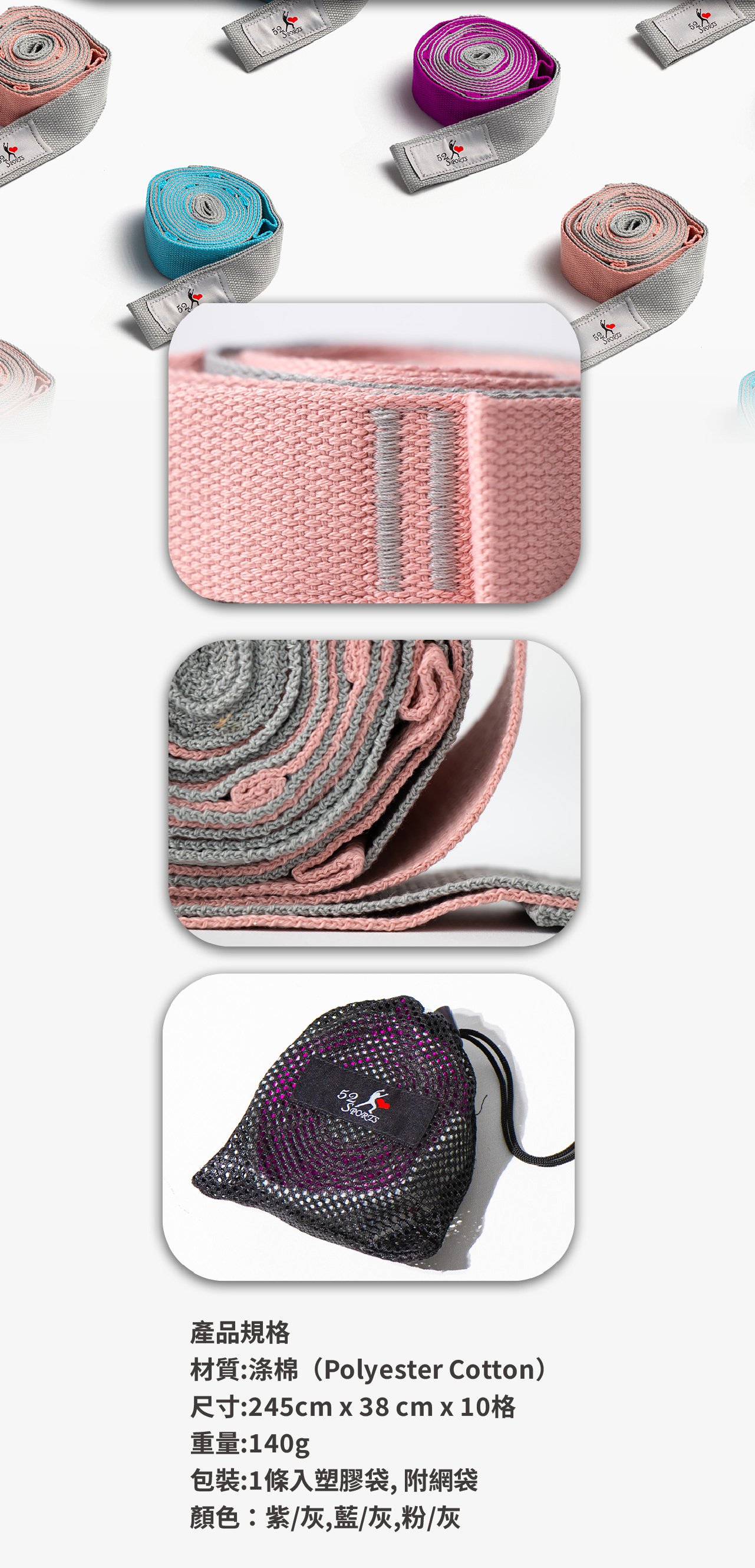 商品規格:材質:涤棉(Polyester Cotton)顏色:紫/灰、藍/灰、粉/灰尺寸:245 cm x 38 cm x 10格淨重:140 g包裝:1條 入塑膠袋,附收納網袋產地:中國大陸
