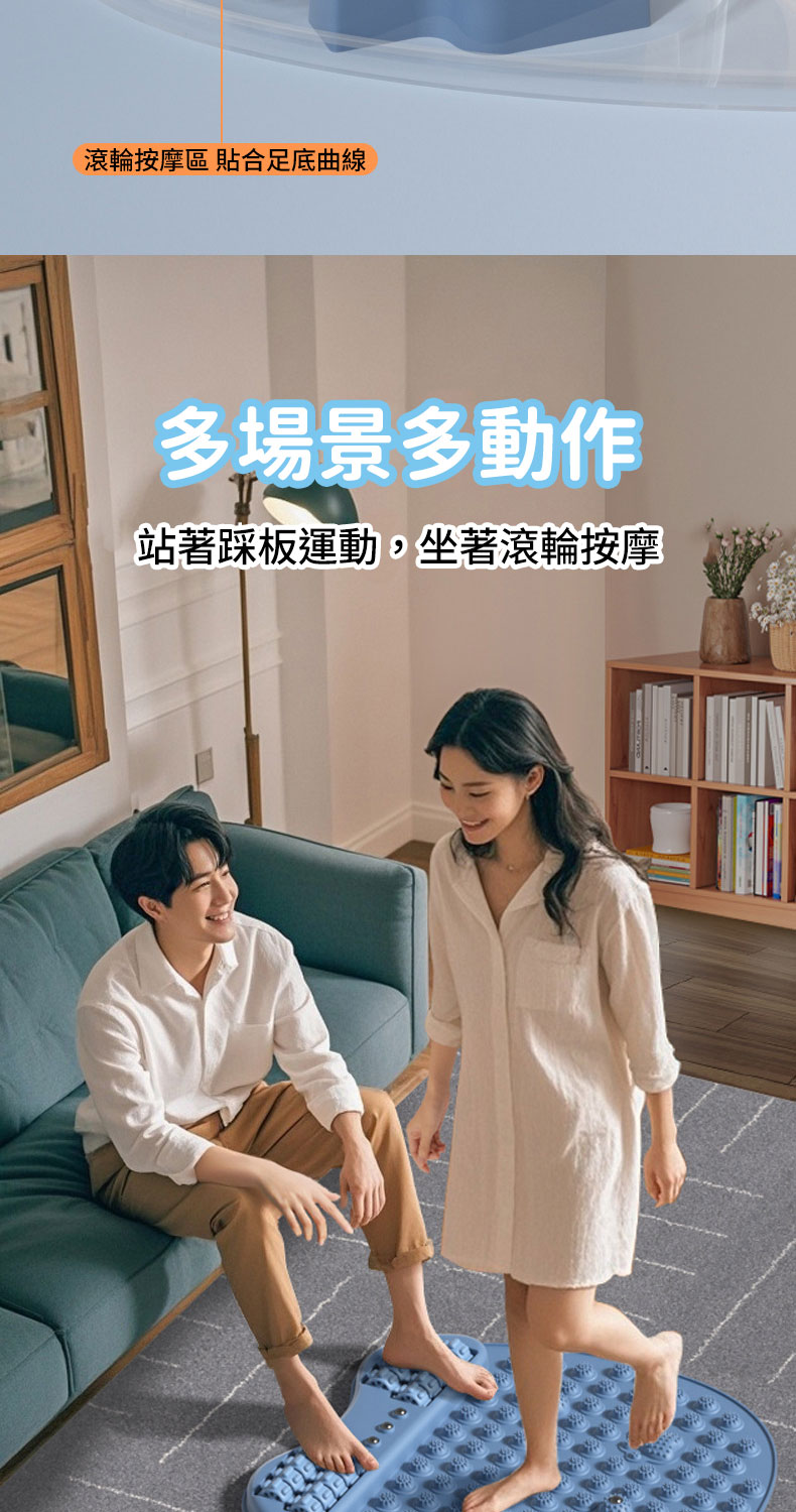 一墊兩用:站著慢跑、坐著滾輪舒緩疏通經絡