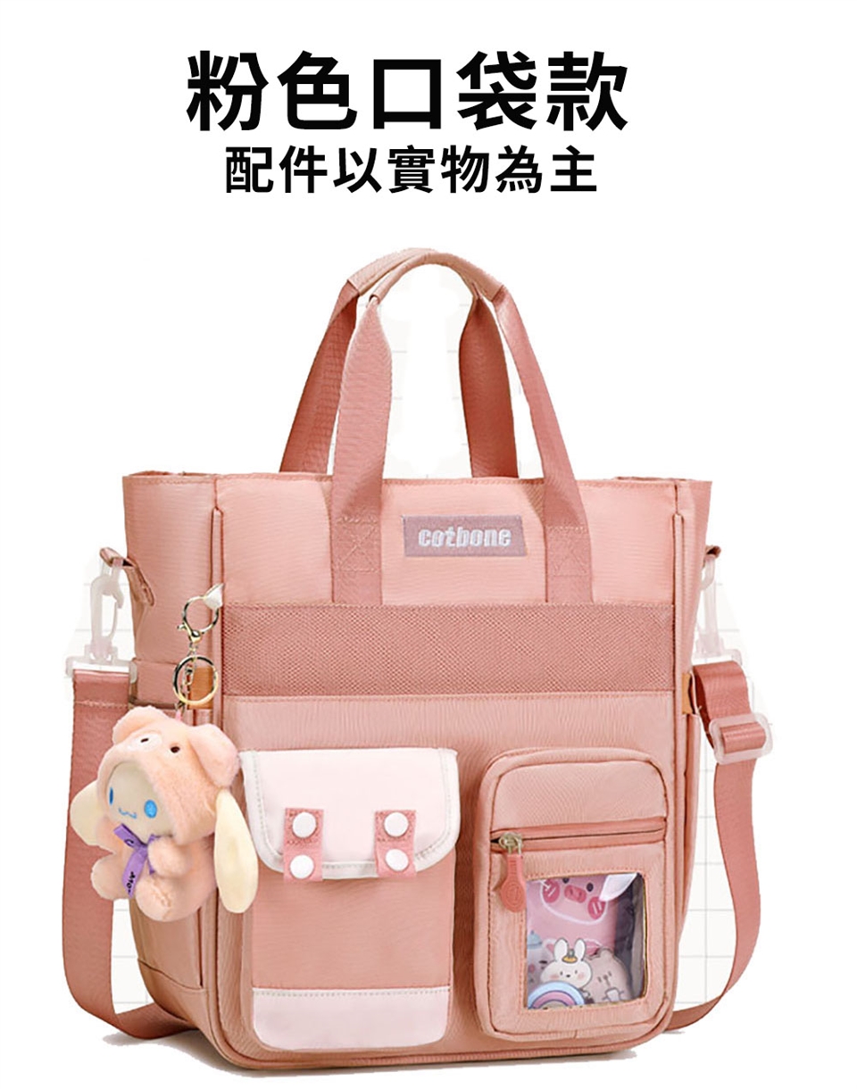 Student tote bag/school bag for elementary school (pocket style) (Cherry blossom pink + 6-piece set with little Mei doll)