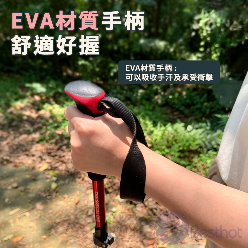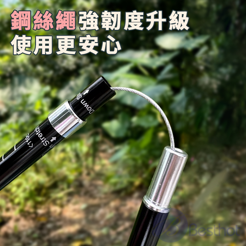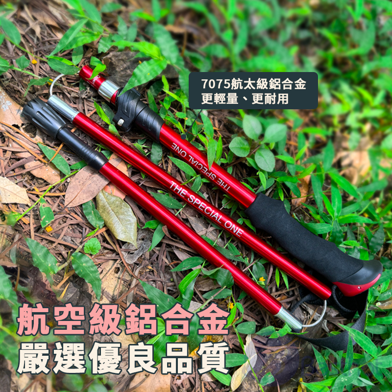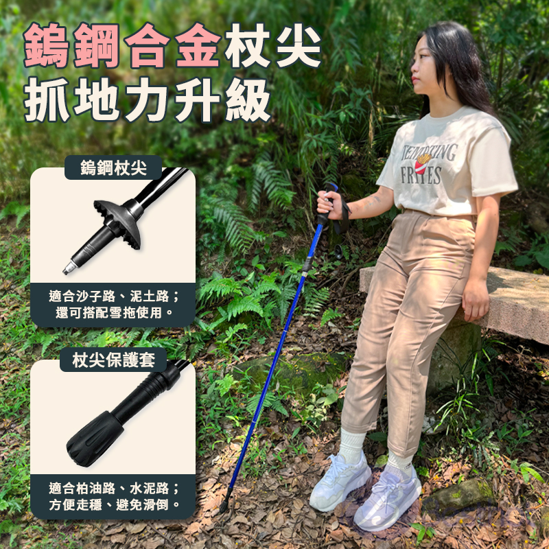 超值登山杖二入組,附杖尖套雪帽; 輕量杖身設計,戶外登山健行首選; 嚴選優良品質,鋼絲繩強韌度升級; 鎢鋼合金杖尖,防磨防滑性能更好; 不受身高限制,更適合亞州人使用。