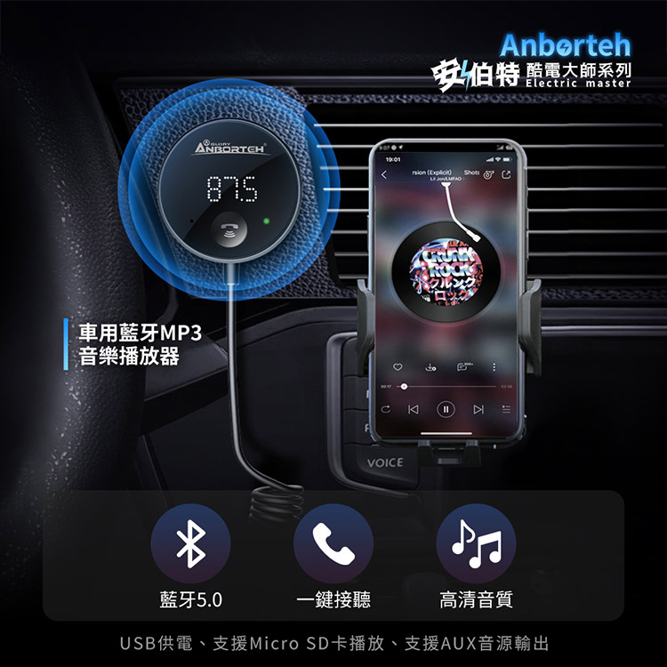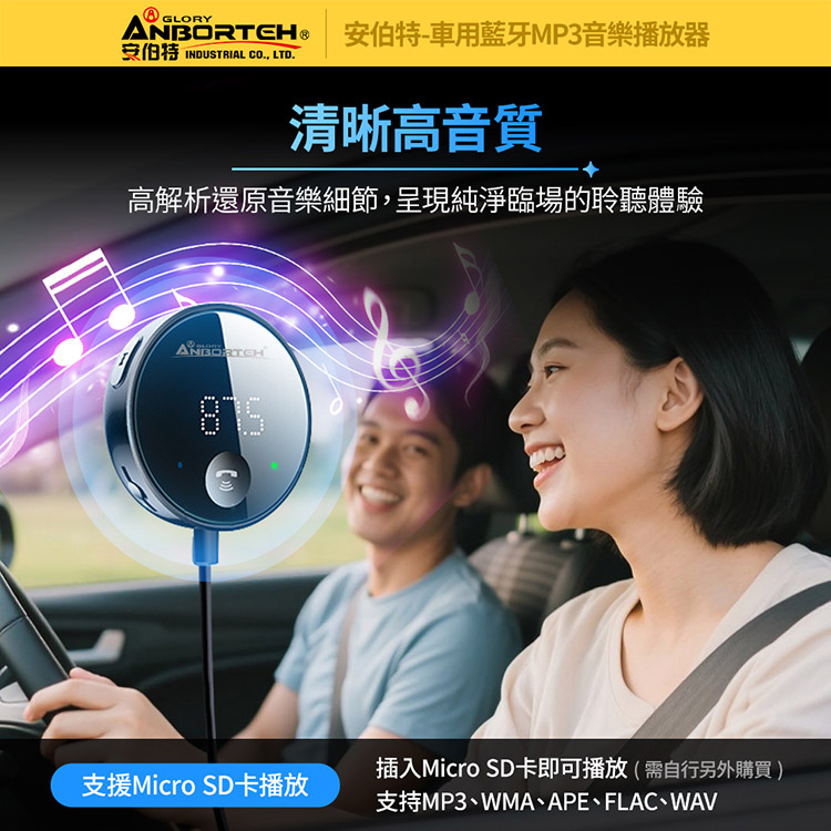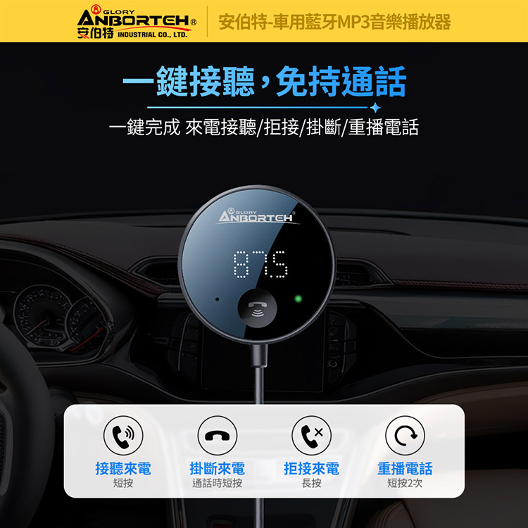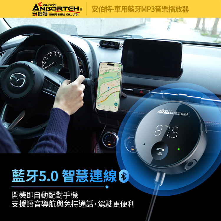 【安伯特】車用藍牙MP3音樂播放器 (國家認證 一年保固) 藍芽播放器 免持通話